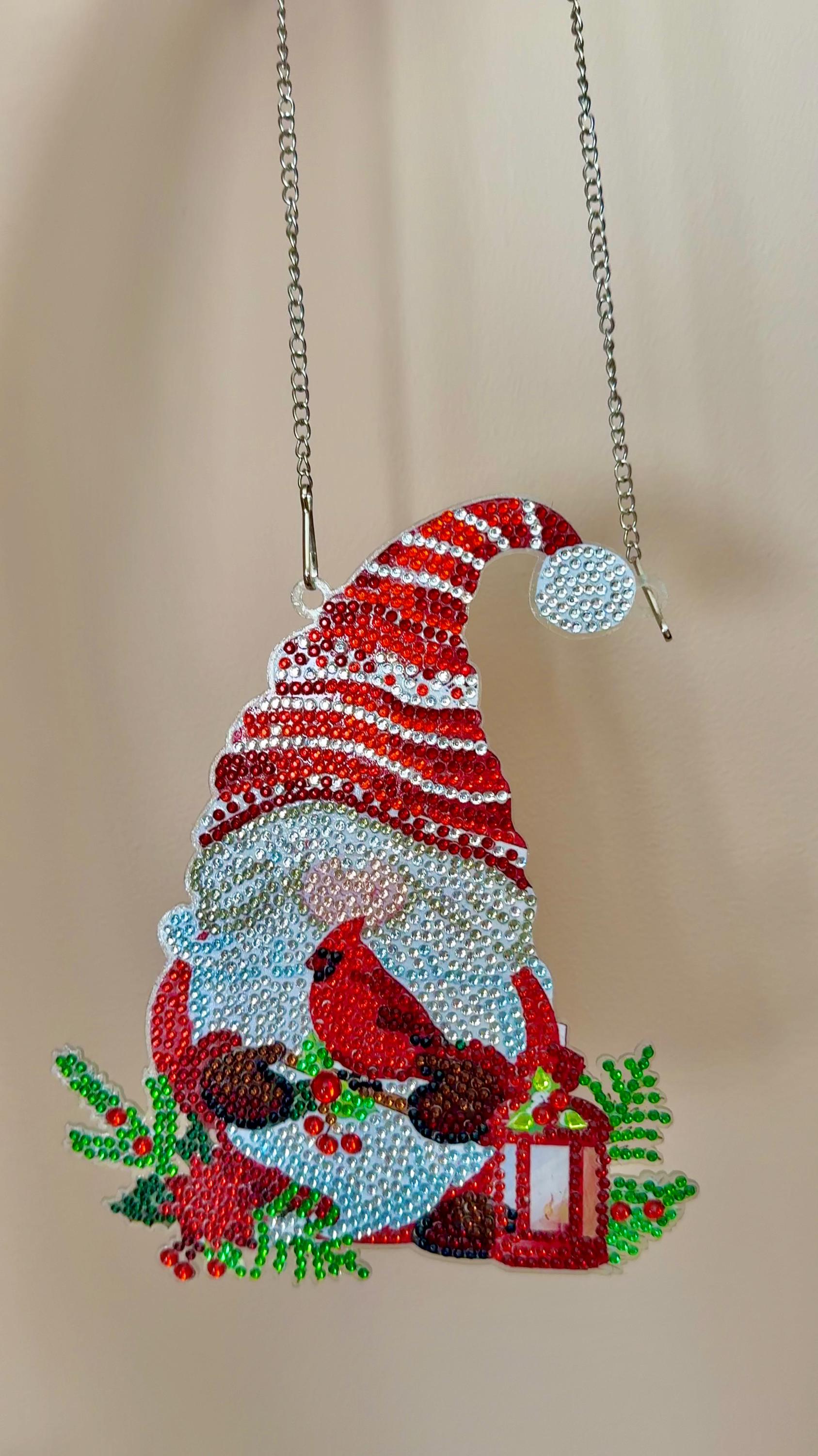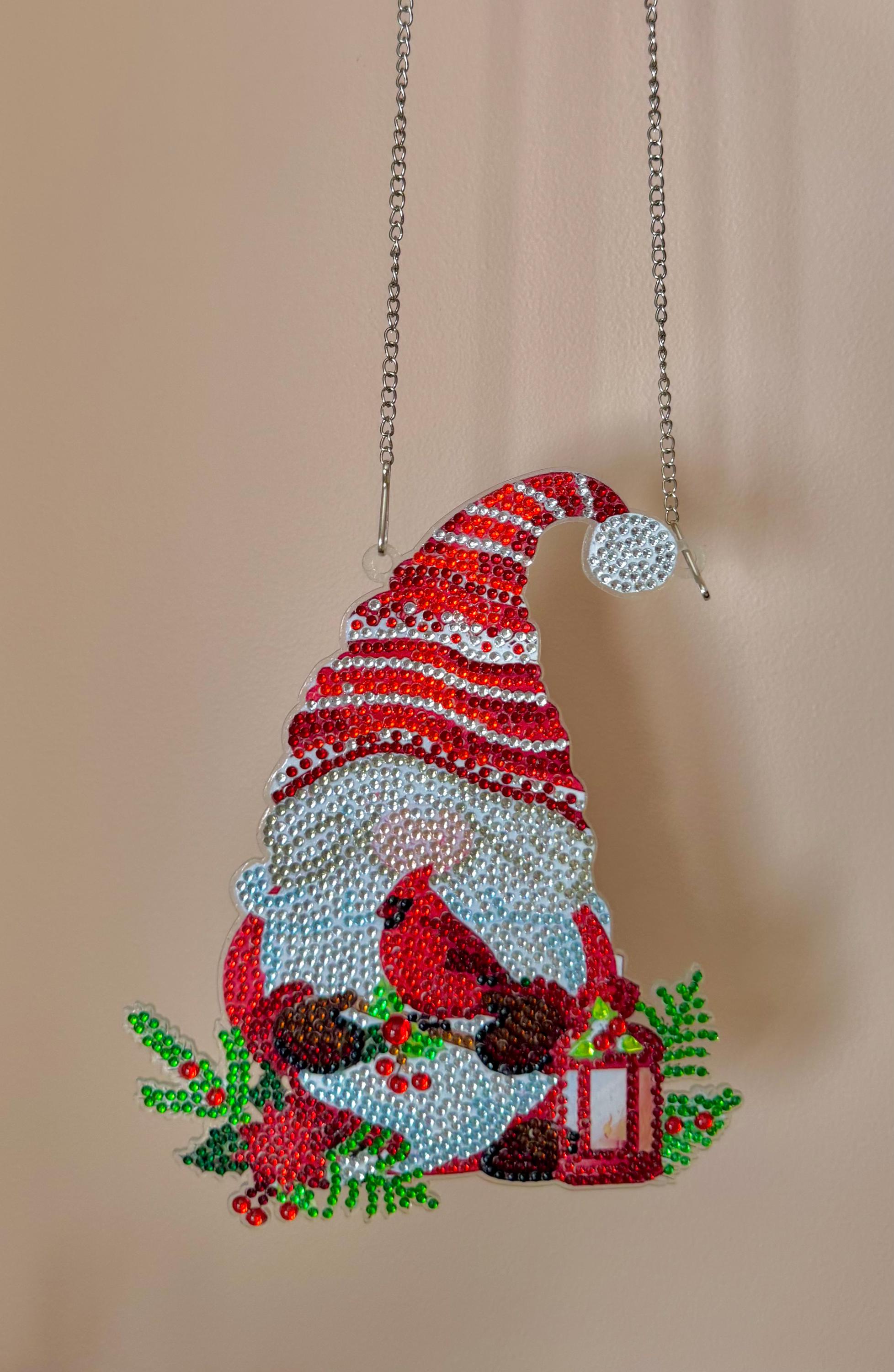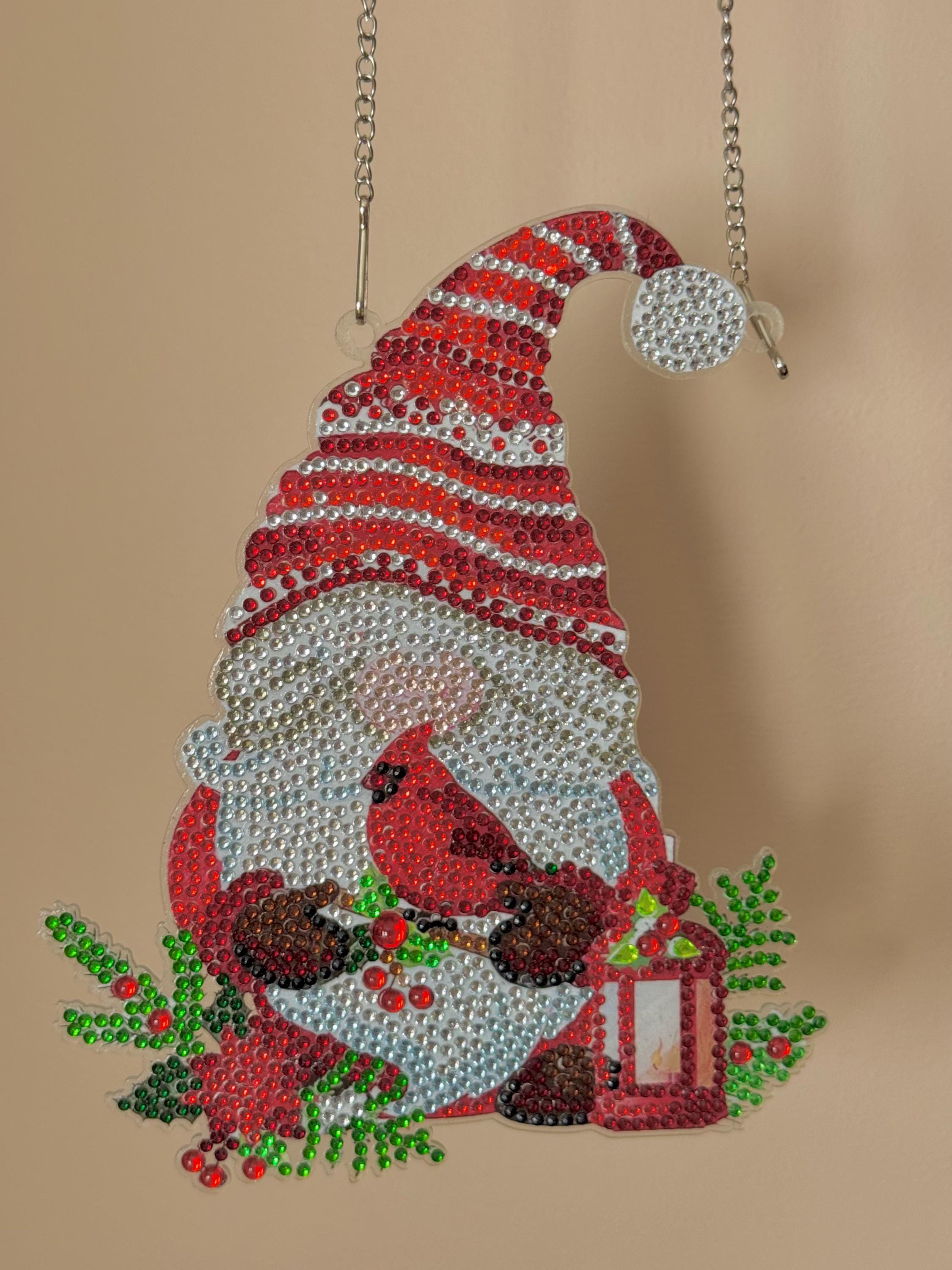 Christmas Gnome Diamond Art Hanging: Beaded Cardinal Holiday Decor