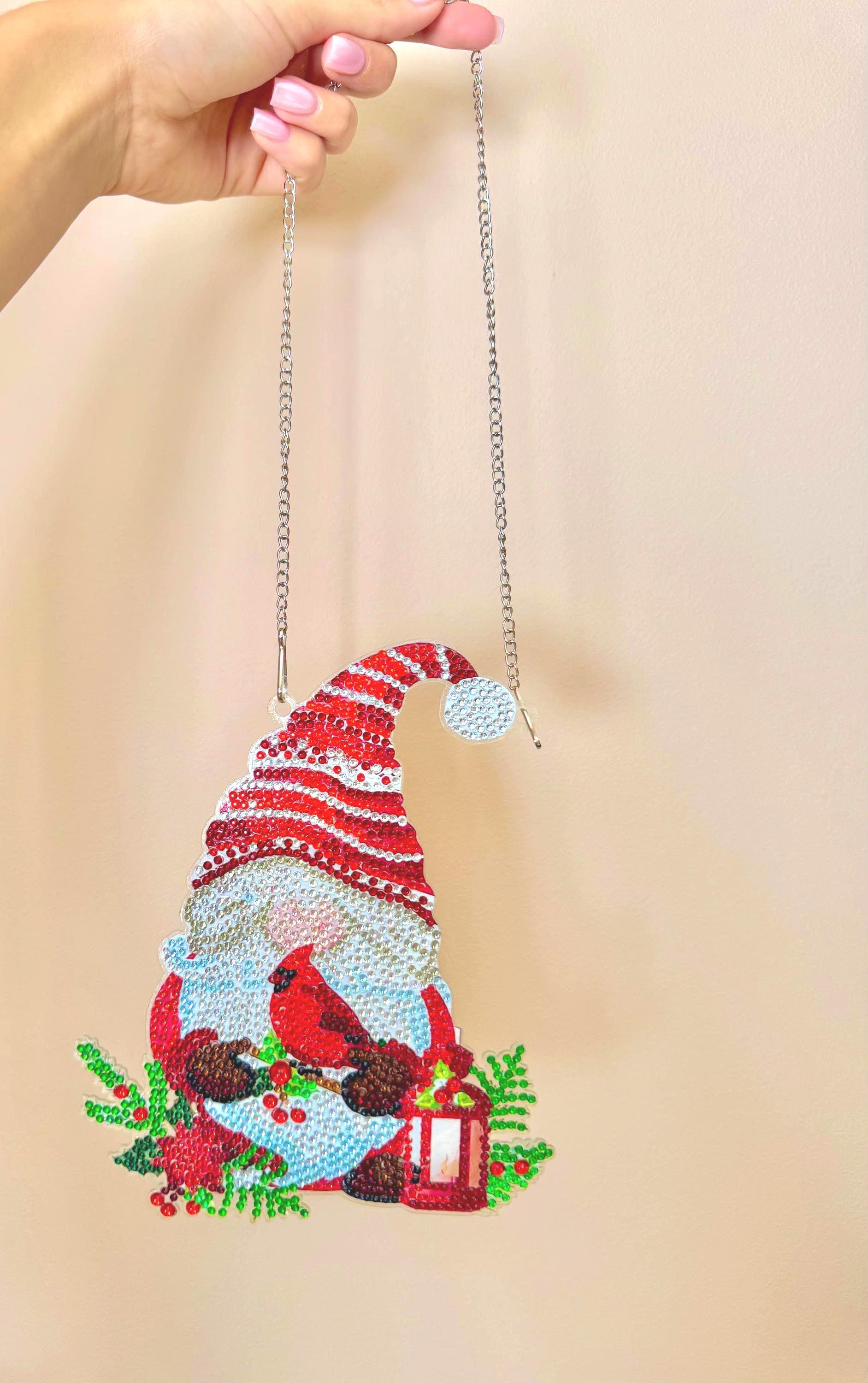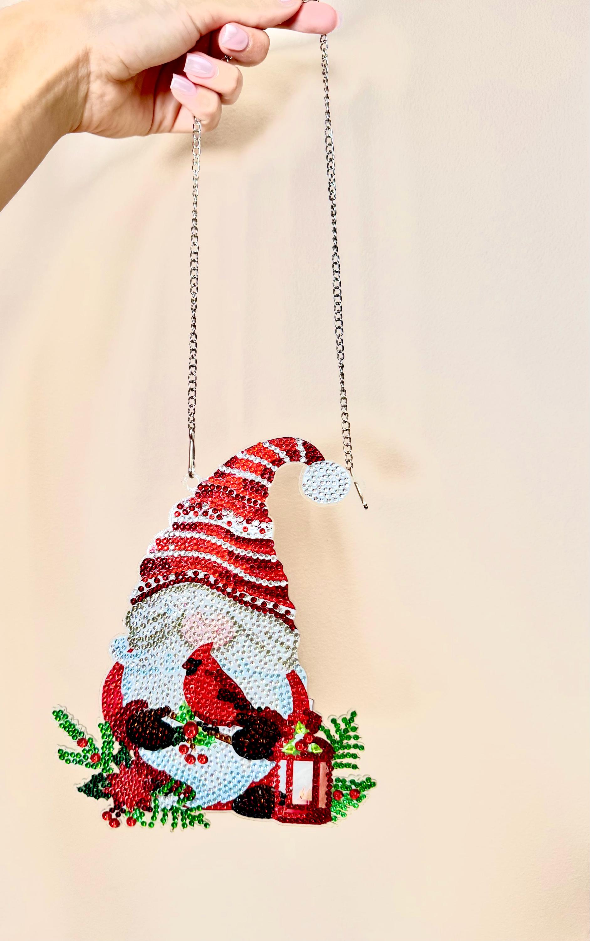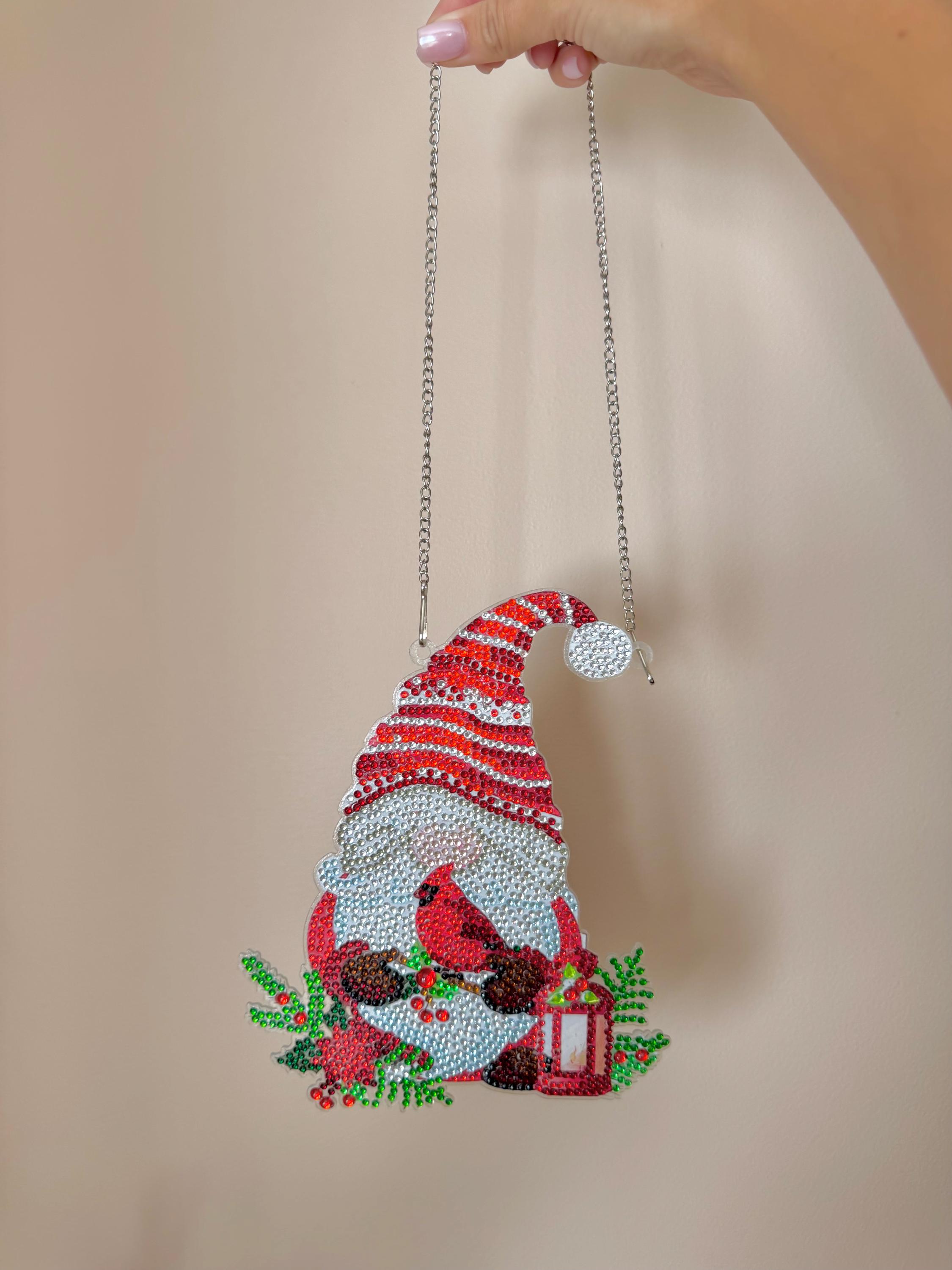 Christmas Gnome Diamond Art Hanging: Beaded Cardinal Holiday Decor