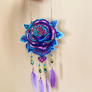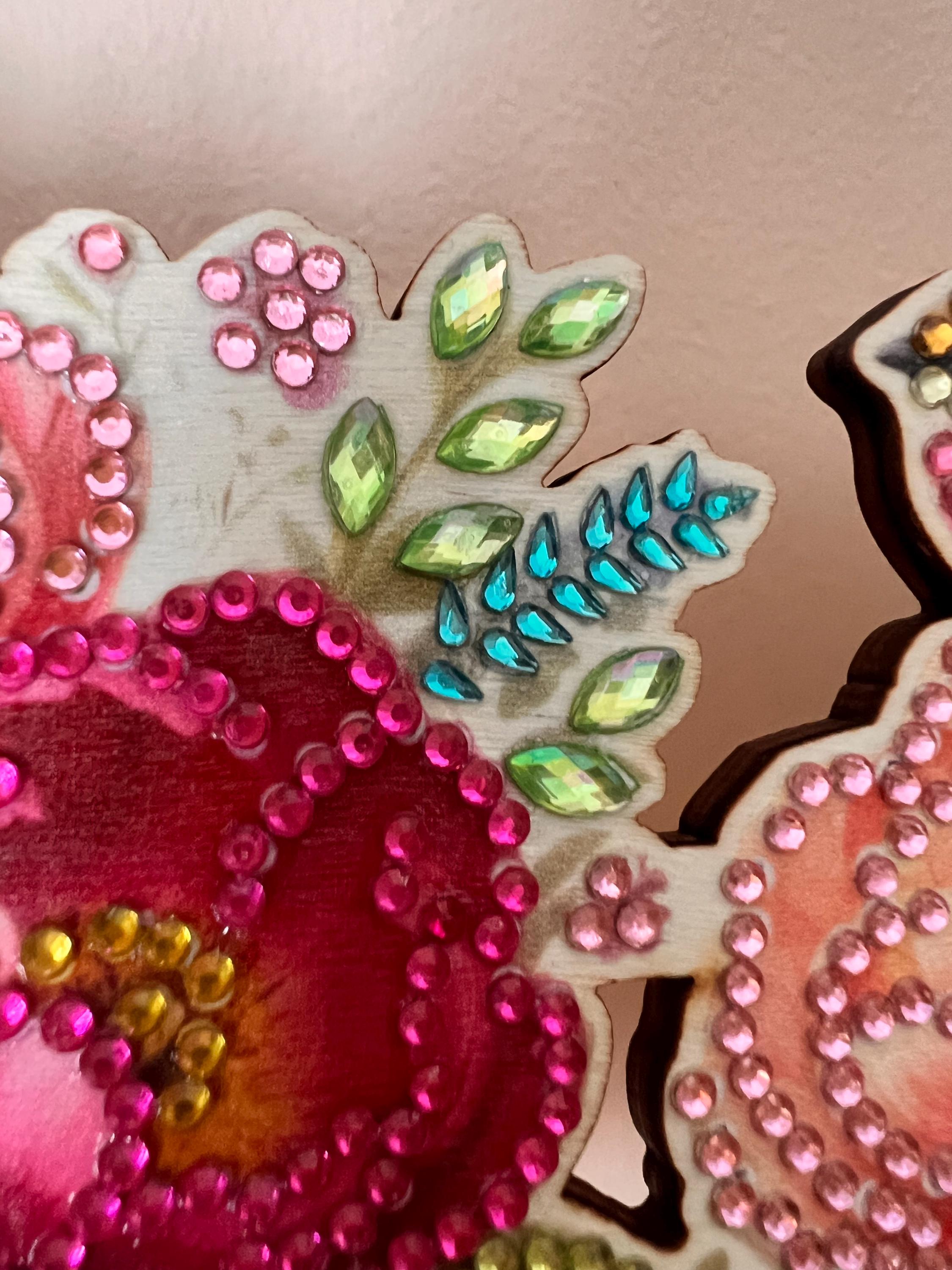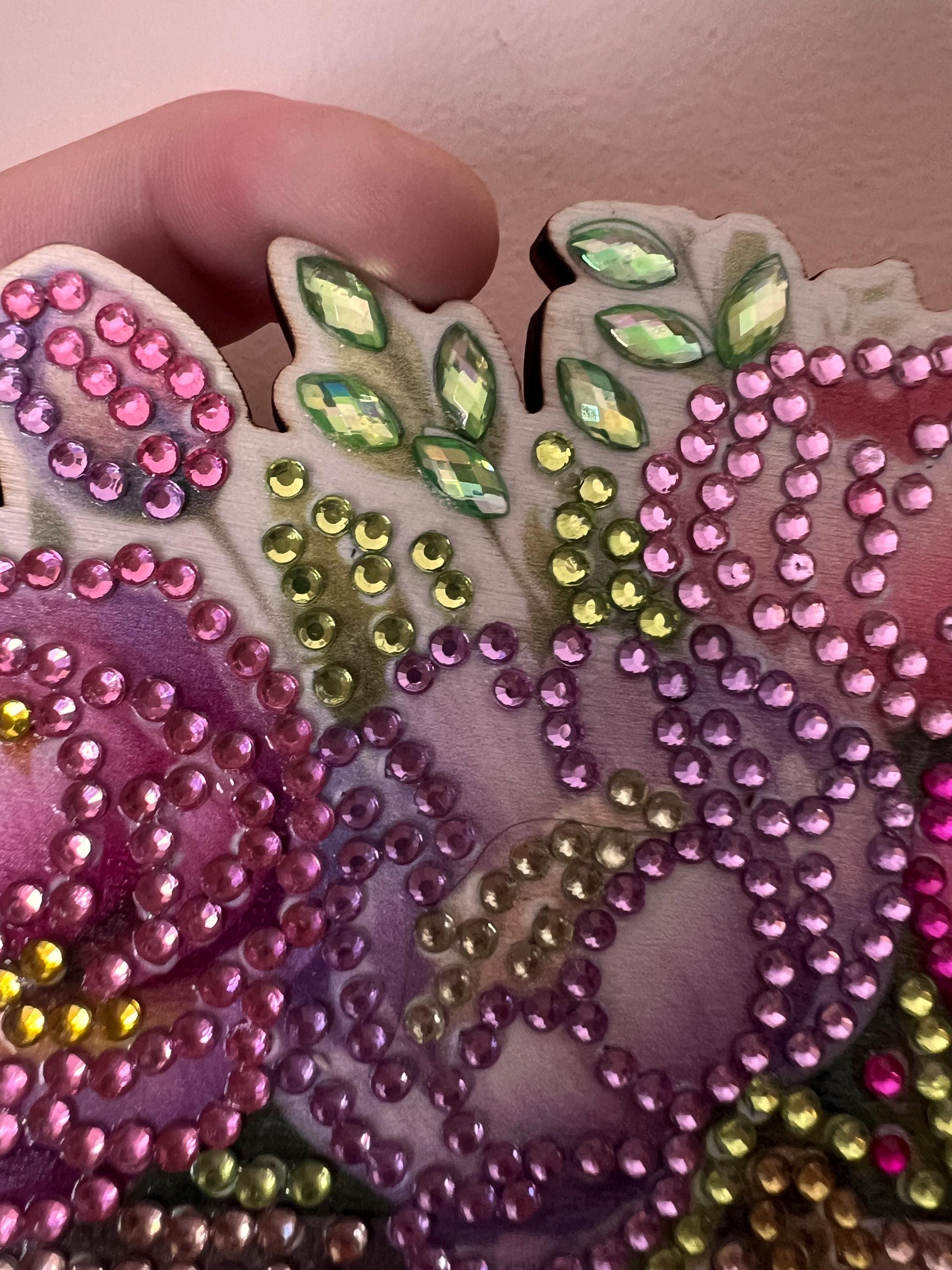 Diamond Painted Floral Wall Hook – Handmade Beaded Key Holder