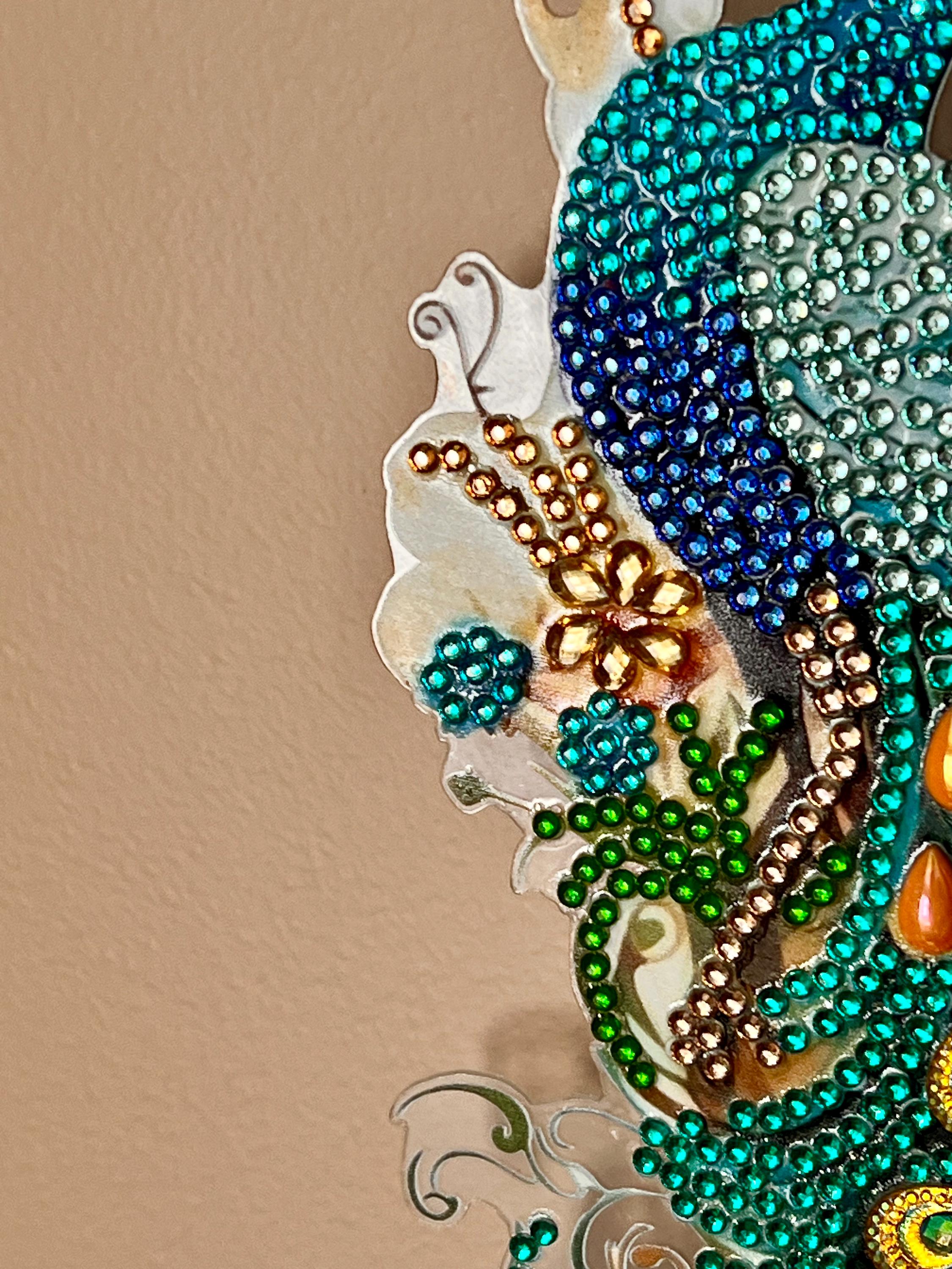 Handmade Rhinestone Peacock Wall Hanging: Beaded Feather Decor