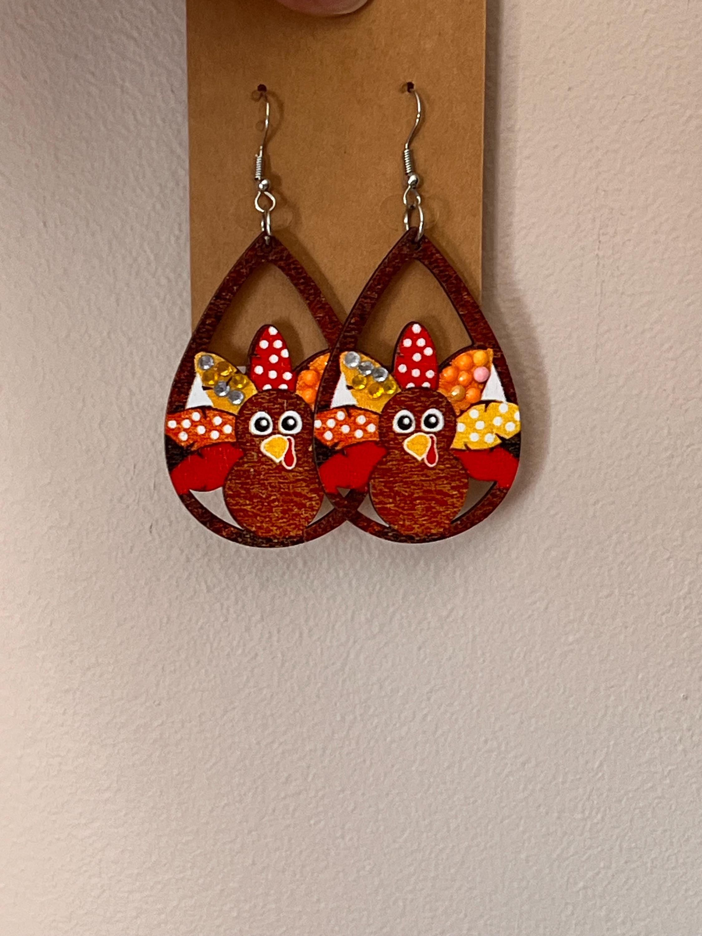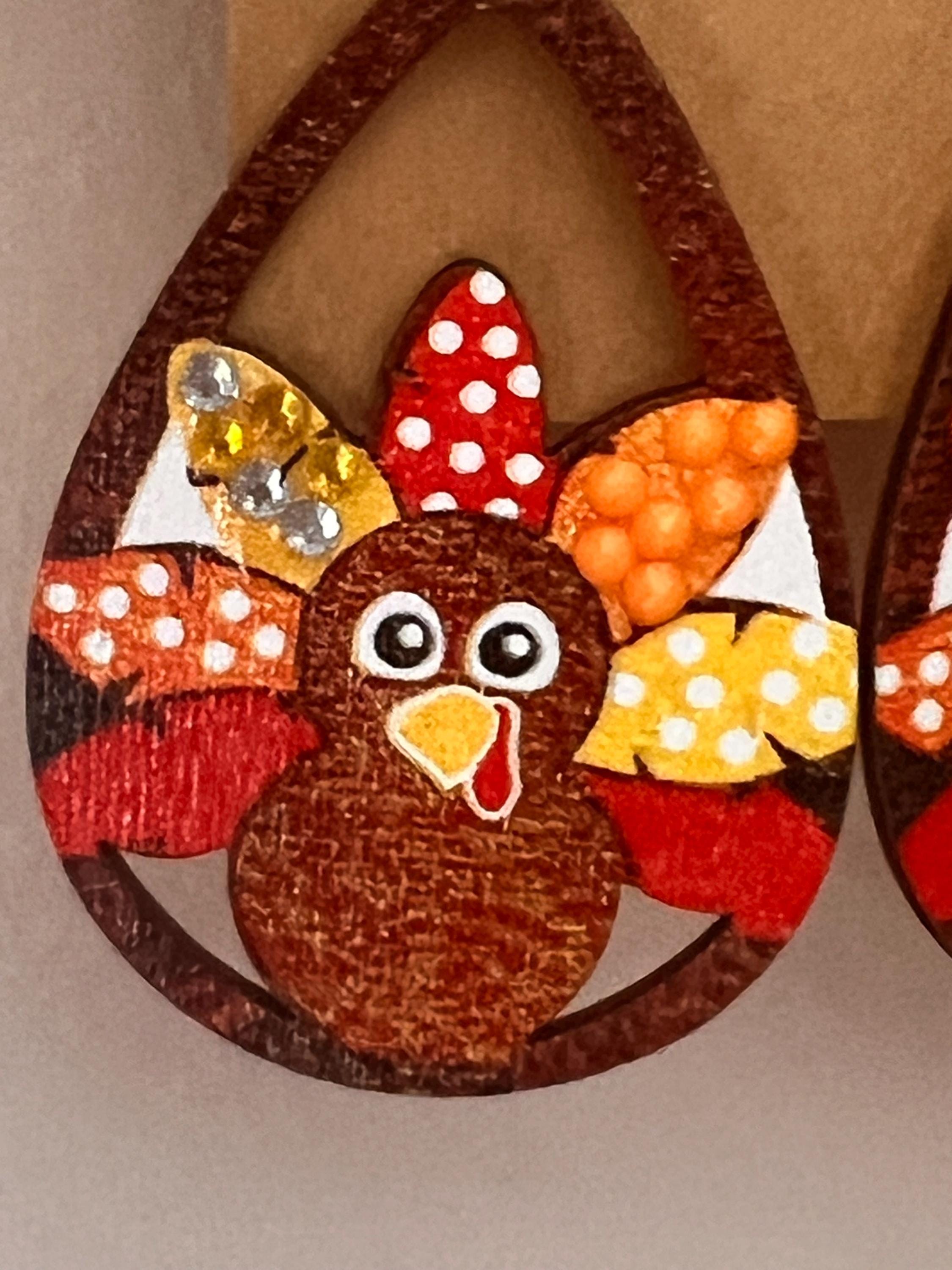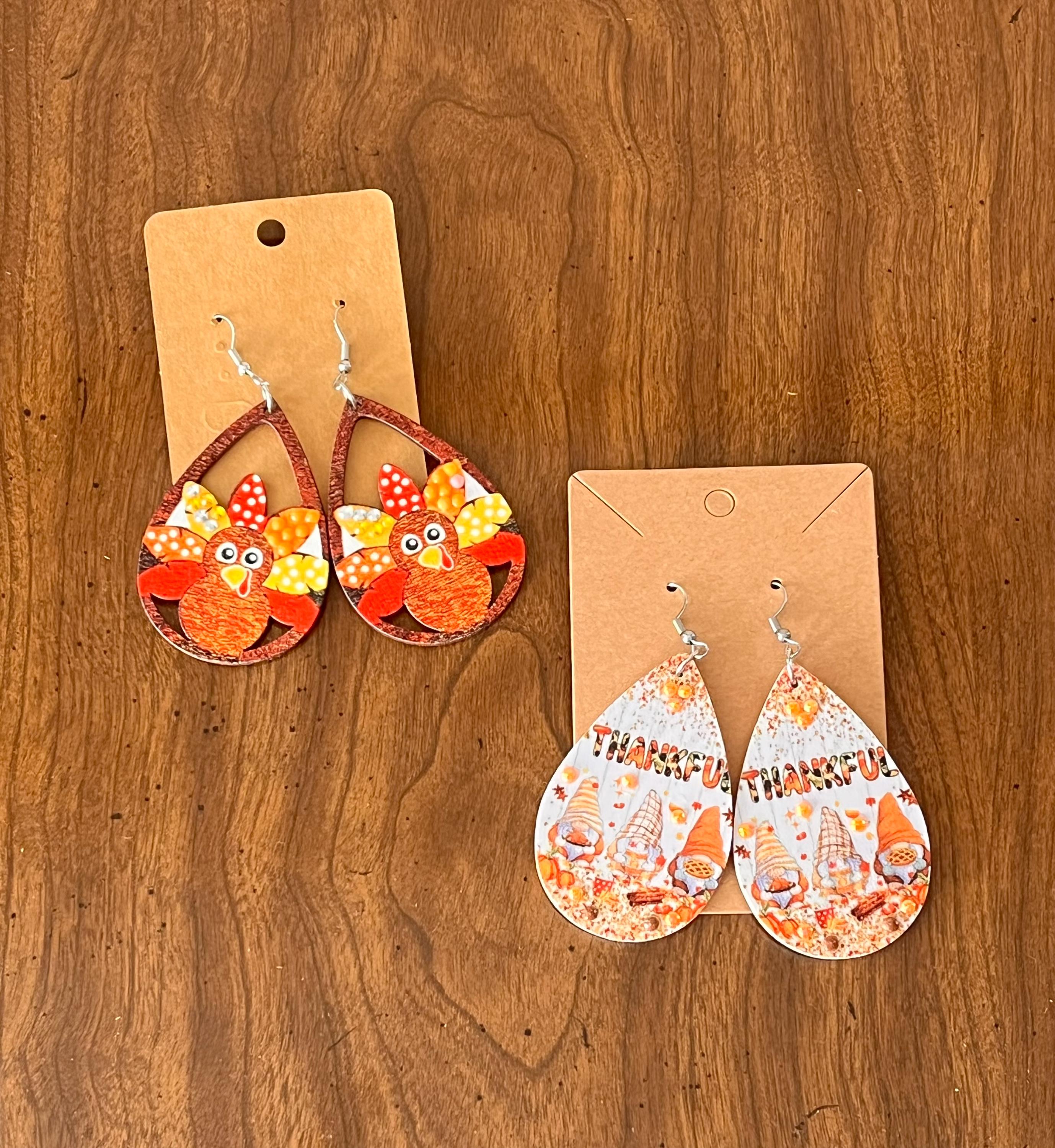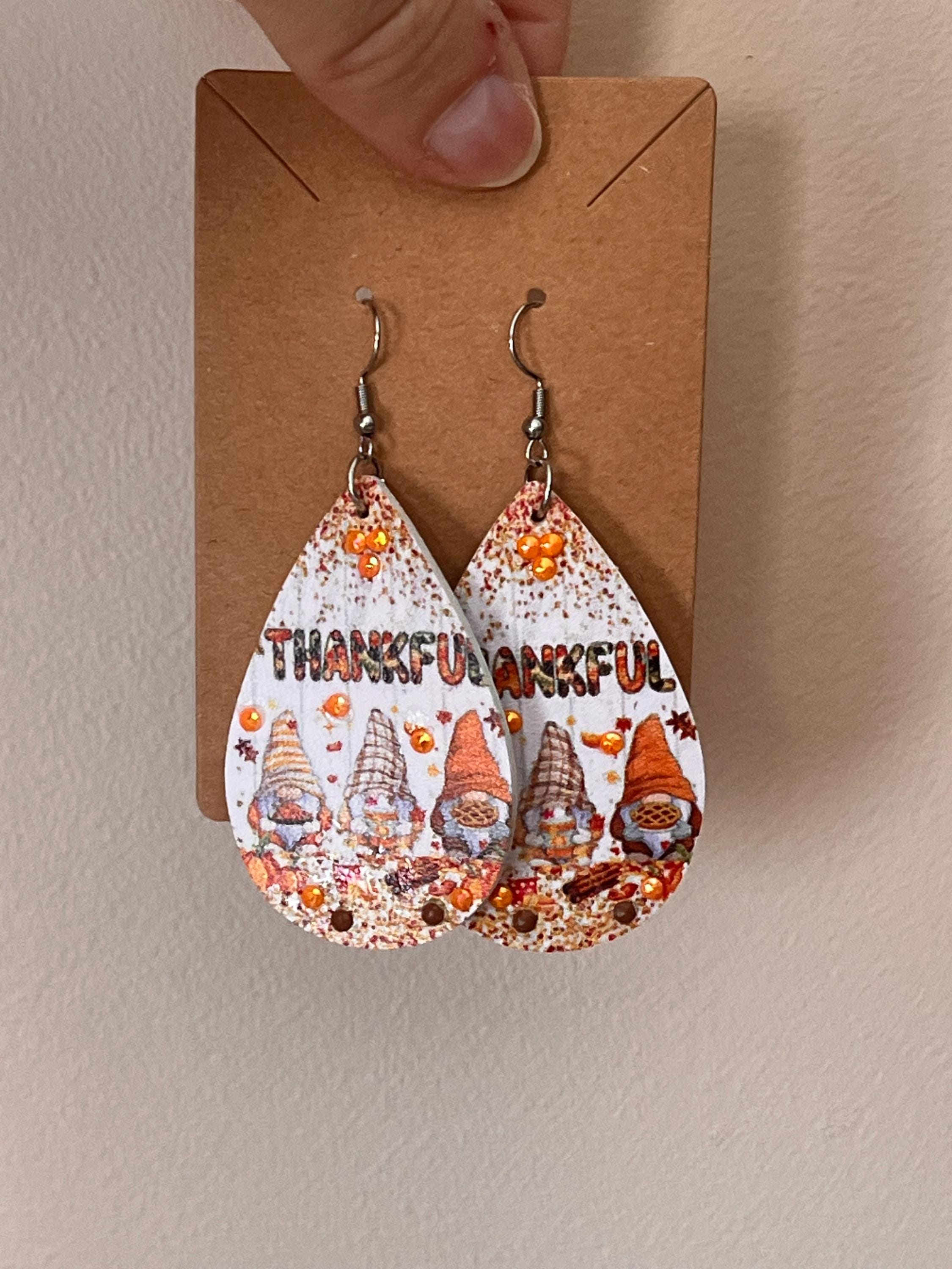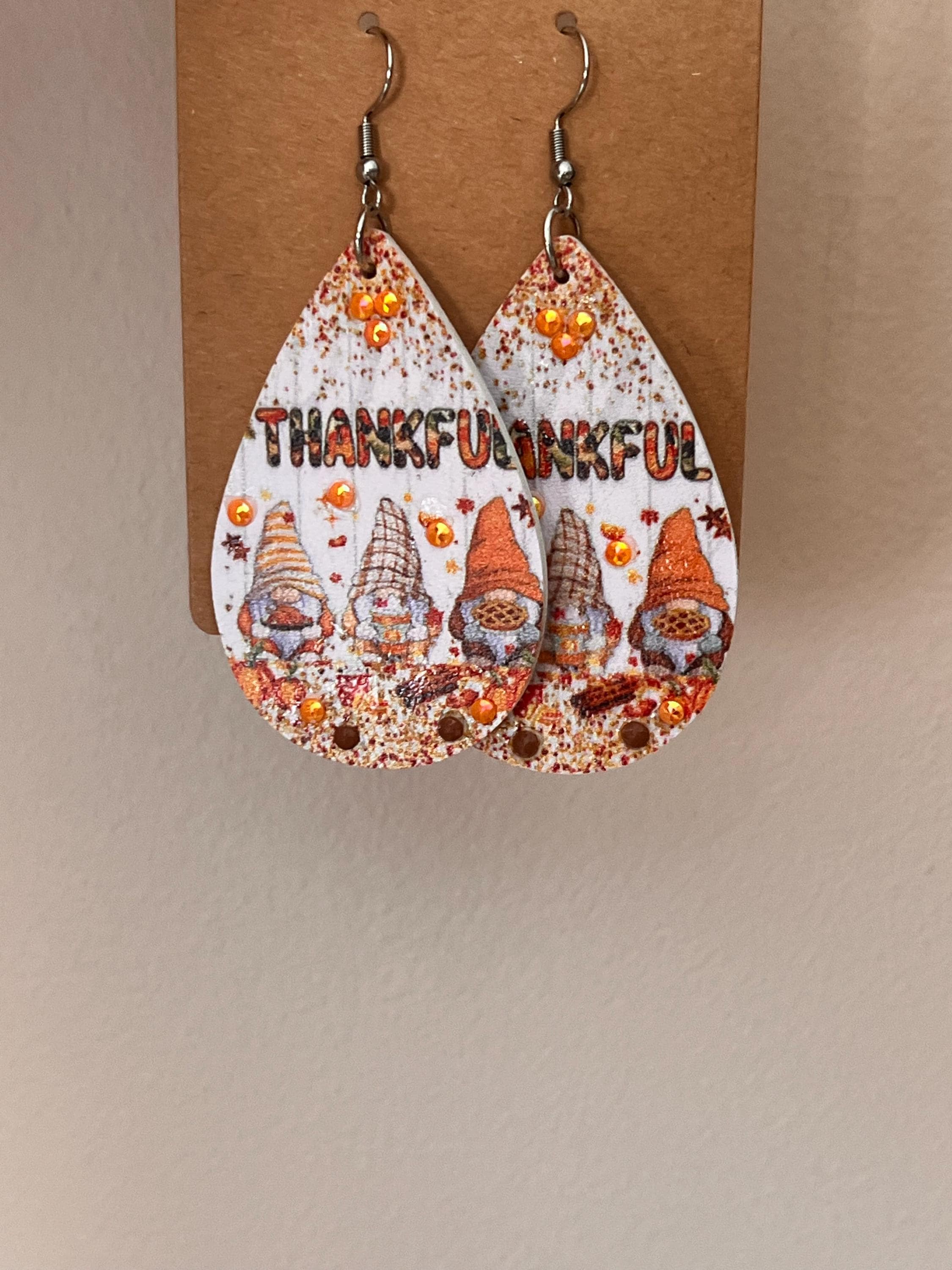 Thanksgiving Earrings: Turkey or Thankful Gnomes Rhinestone Jewelry