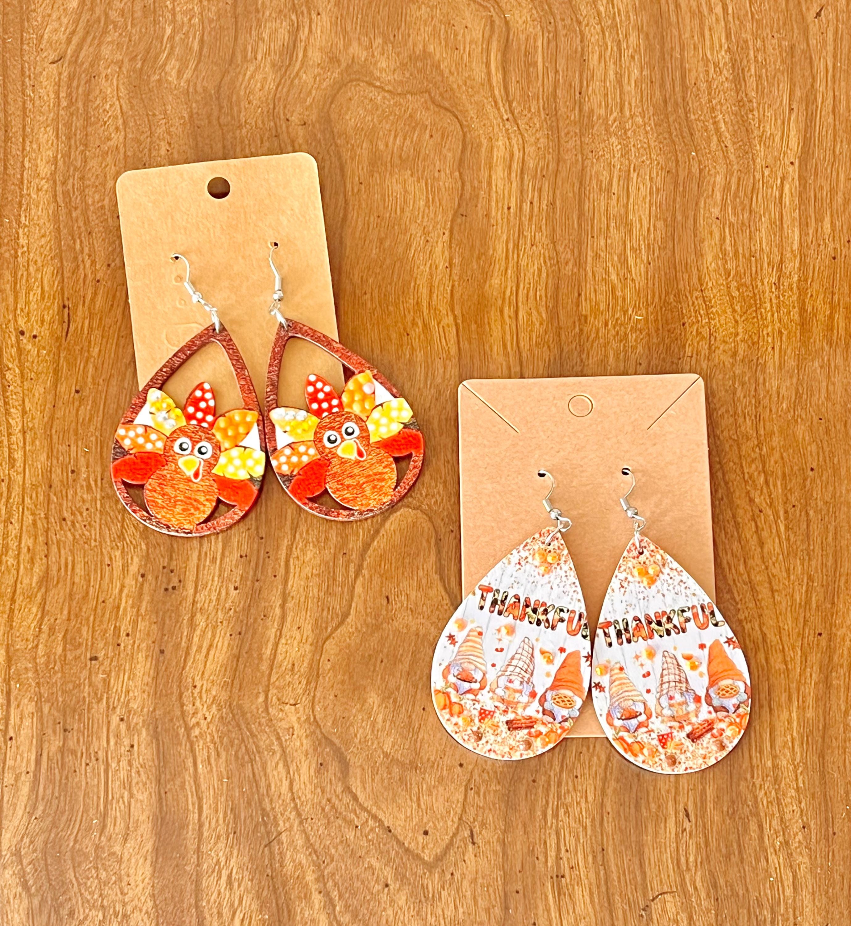 🦃 Celebrate the season in style with these festive Thanksgiving earrings! Choose from adorable one-sided turkey earrings or double-sided “Thankful” earrings, each pair sold individually for easy gifting.
