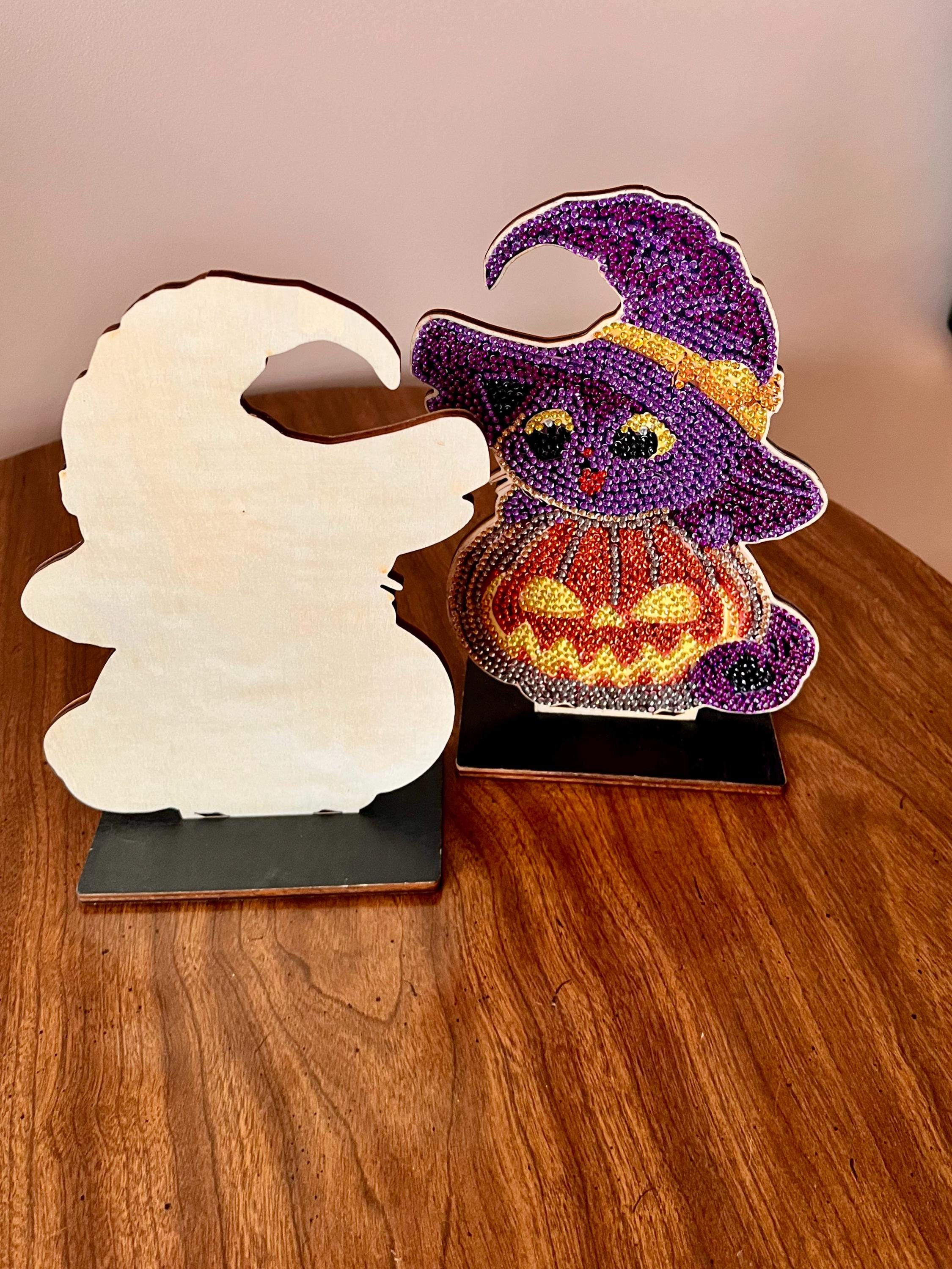 Bring spooky charm and festive flair to your home with this Witchy Cat with Jack O’Lantern Wooden Stand! 🖤🎃 Handcrafted with purple bead accents, this single-sided tabletop decoration adds a whimsical Halloween touch to any shelf, mantel, or display.