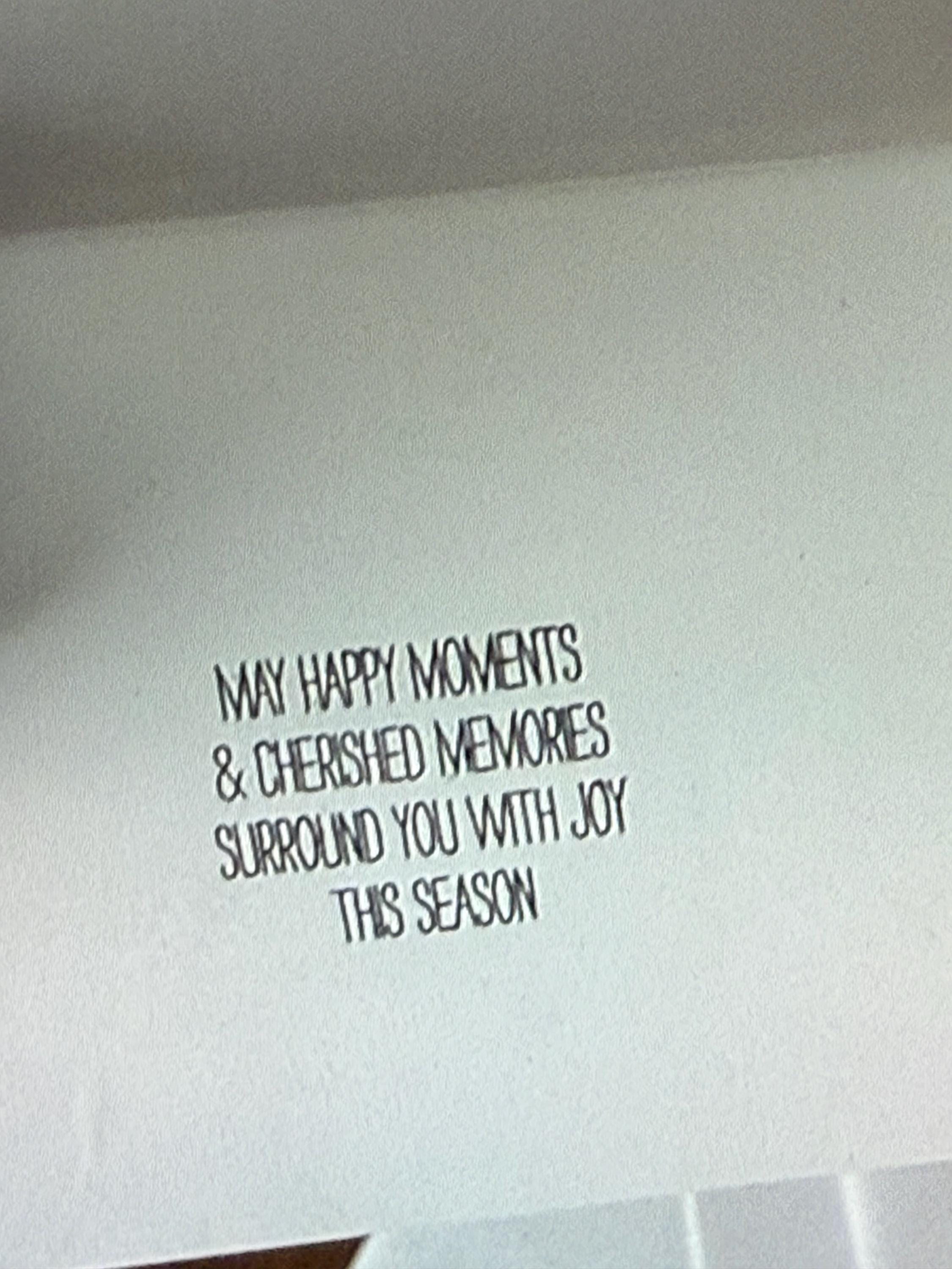 Inside message: “May happy moments & cherished memories surround you with joy this season”