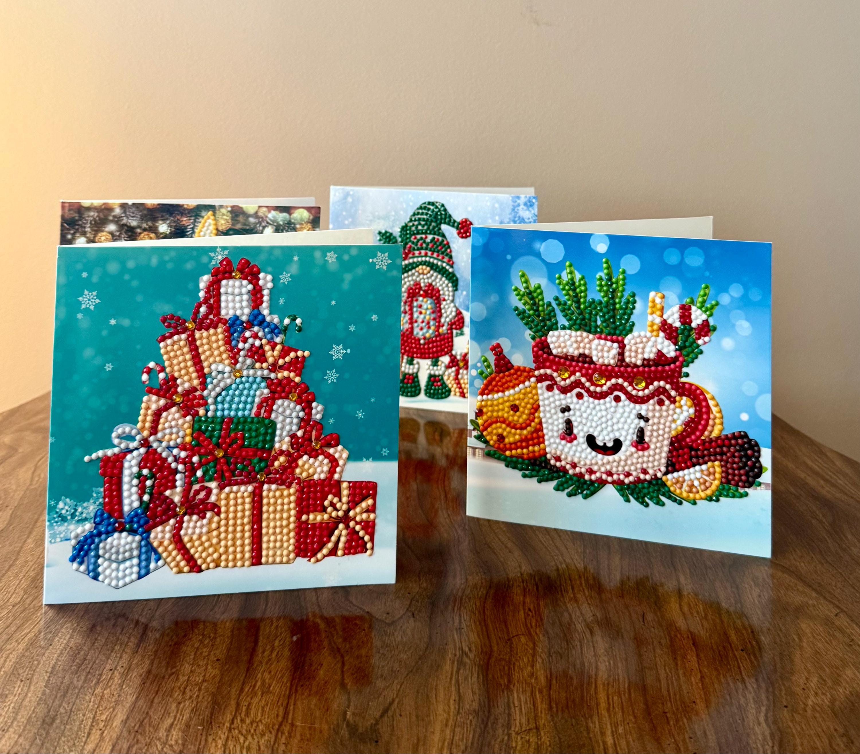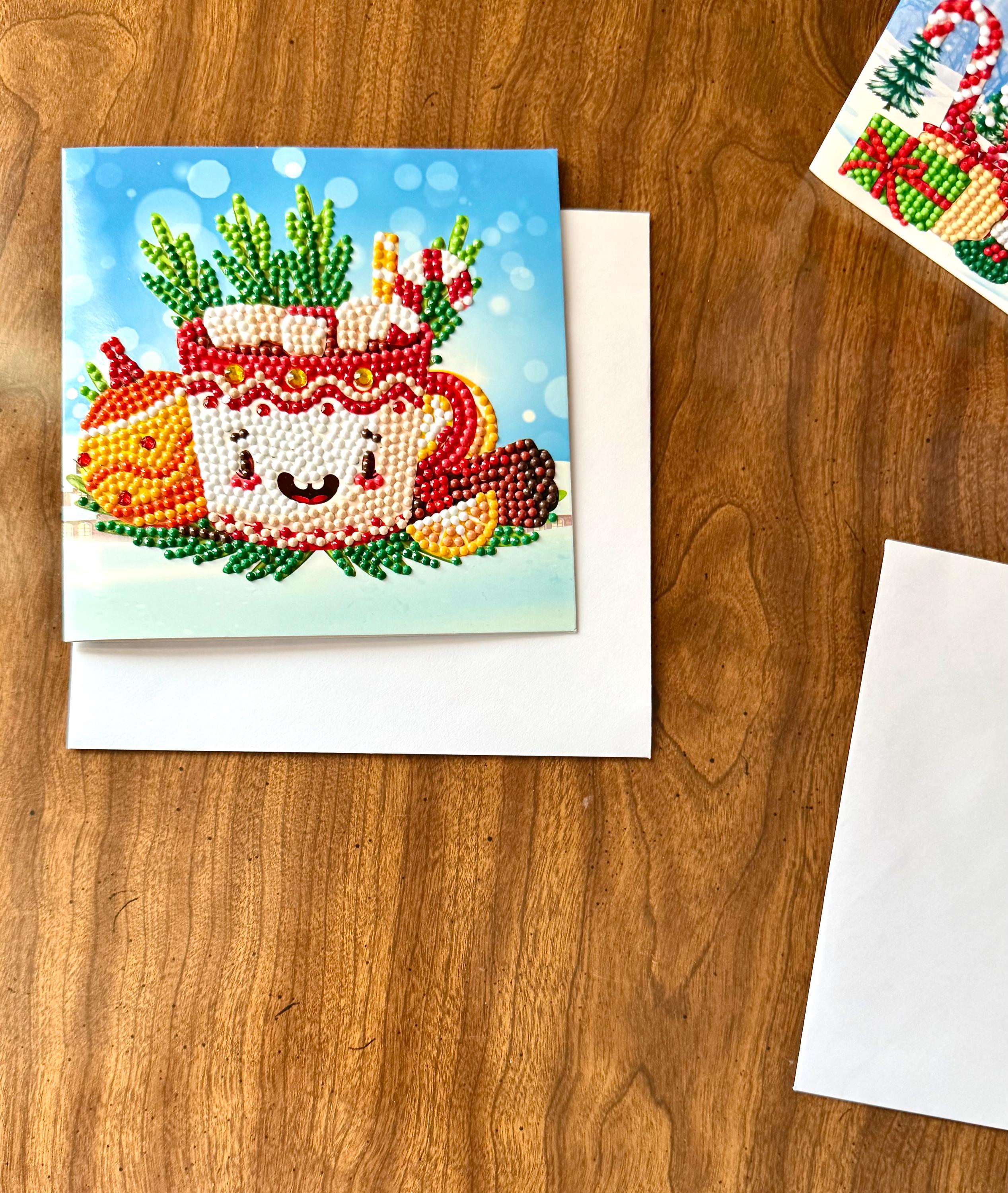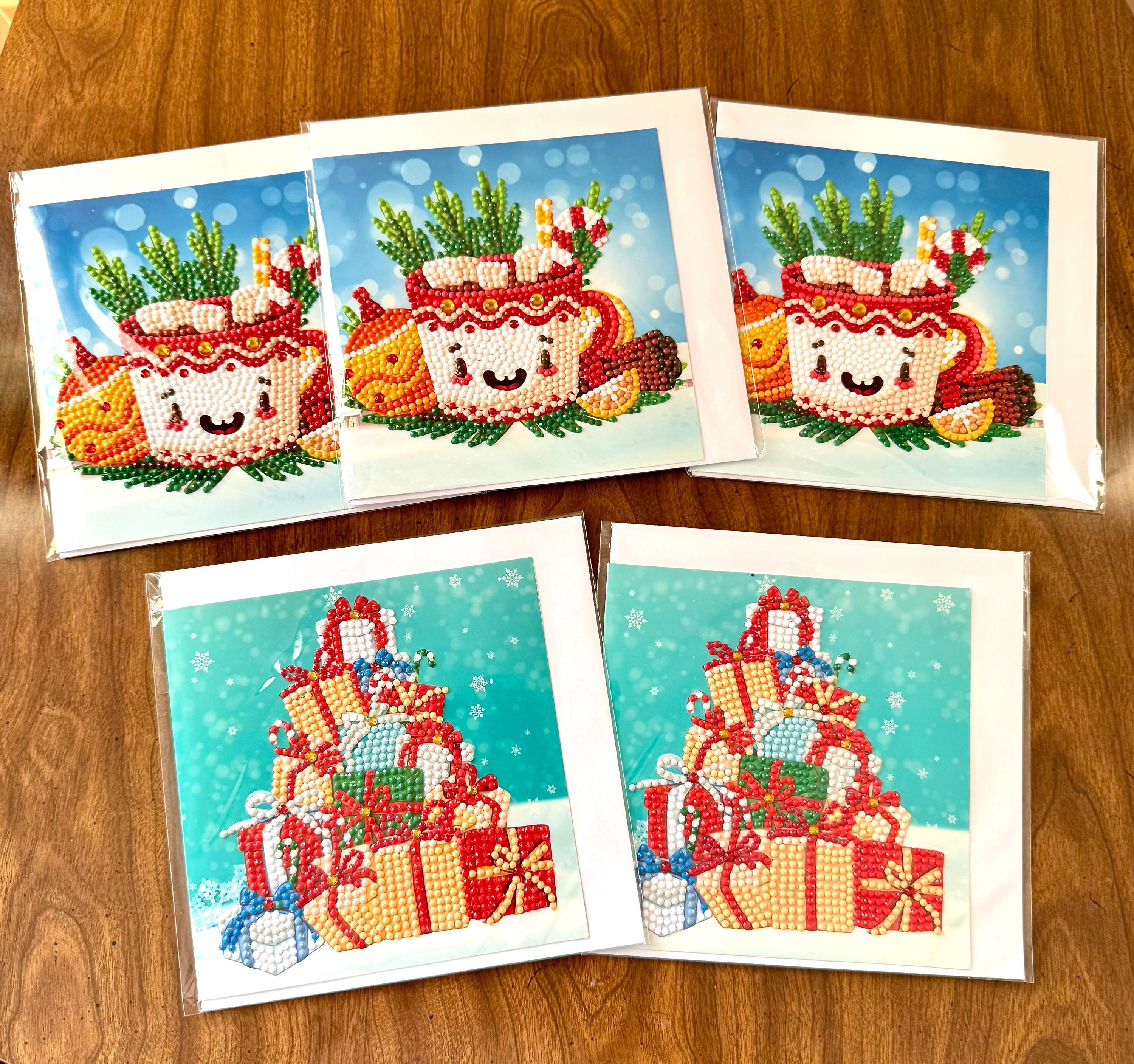 Festive Holiday Designed Diamond Art Christmas Cards – Kawaii Designs, Blank Inside