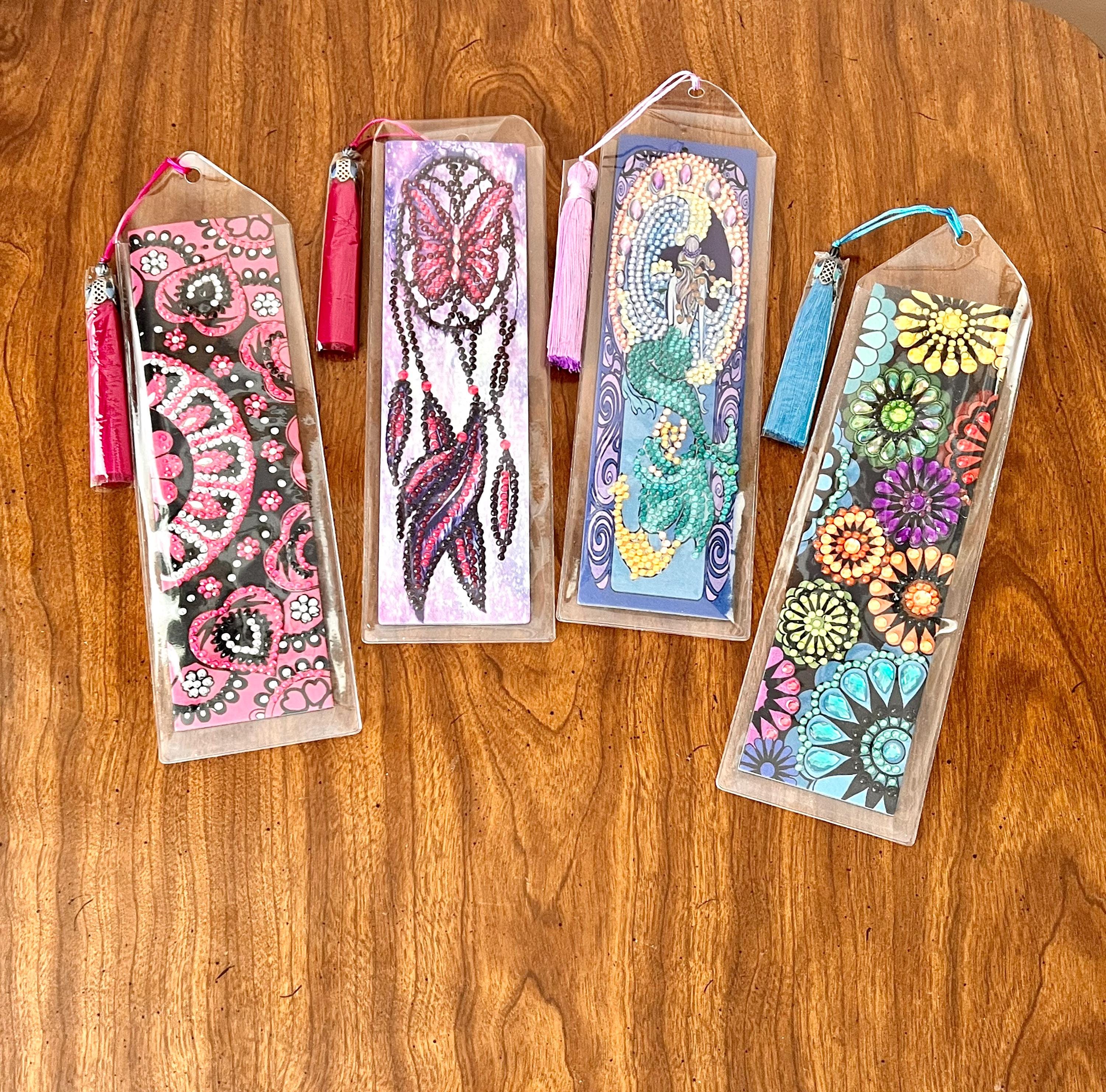 Add a touch of elegance to your reading with these Diamond Art Assorted Bookmarks! Crafted from durable faux leather and adorned with sparkling diamond art designs, these bookmarks are perfect for marking your favorite pages in style.