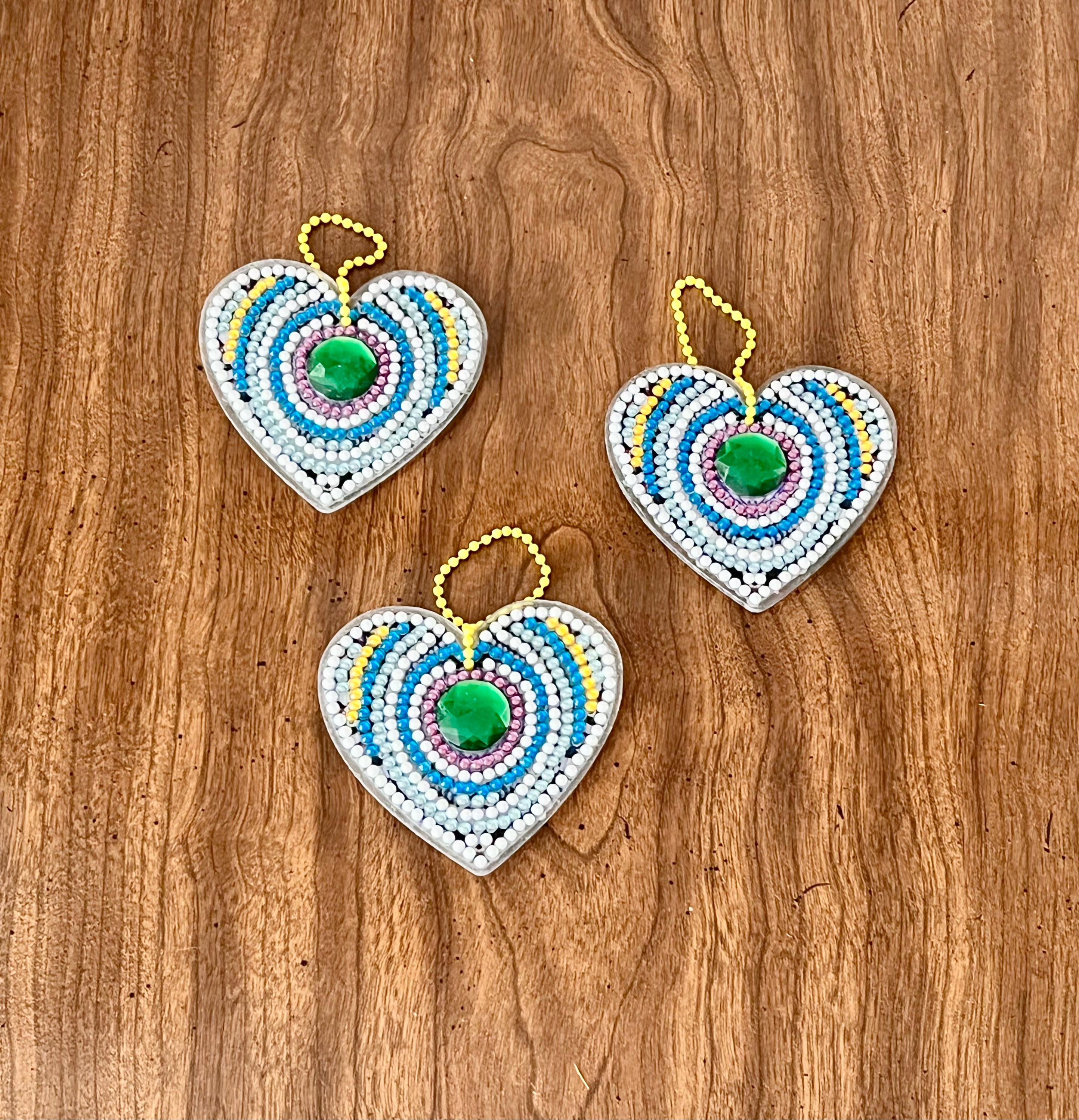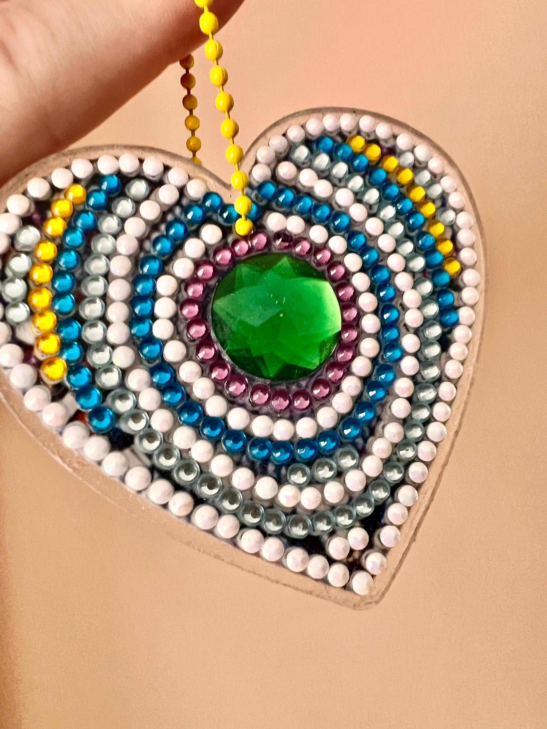 Add a touch of sparkle and love to your keys or bag with this Diamond Art Green Beaded Center Hearts Keychain! πŸ’š Handmade with shimmering rhinestones and intricate beadwork, this double-sided design ensures your keychain shines beautifully from every angle.