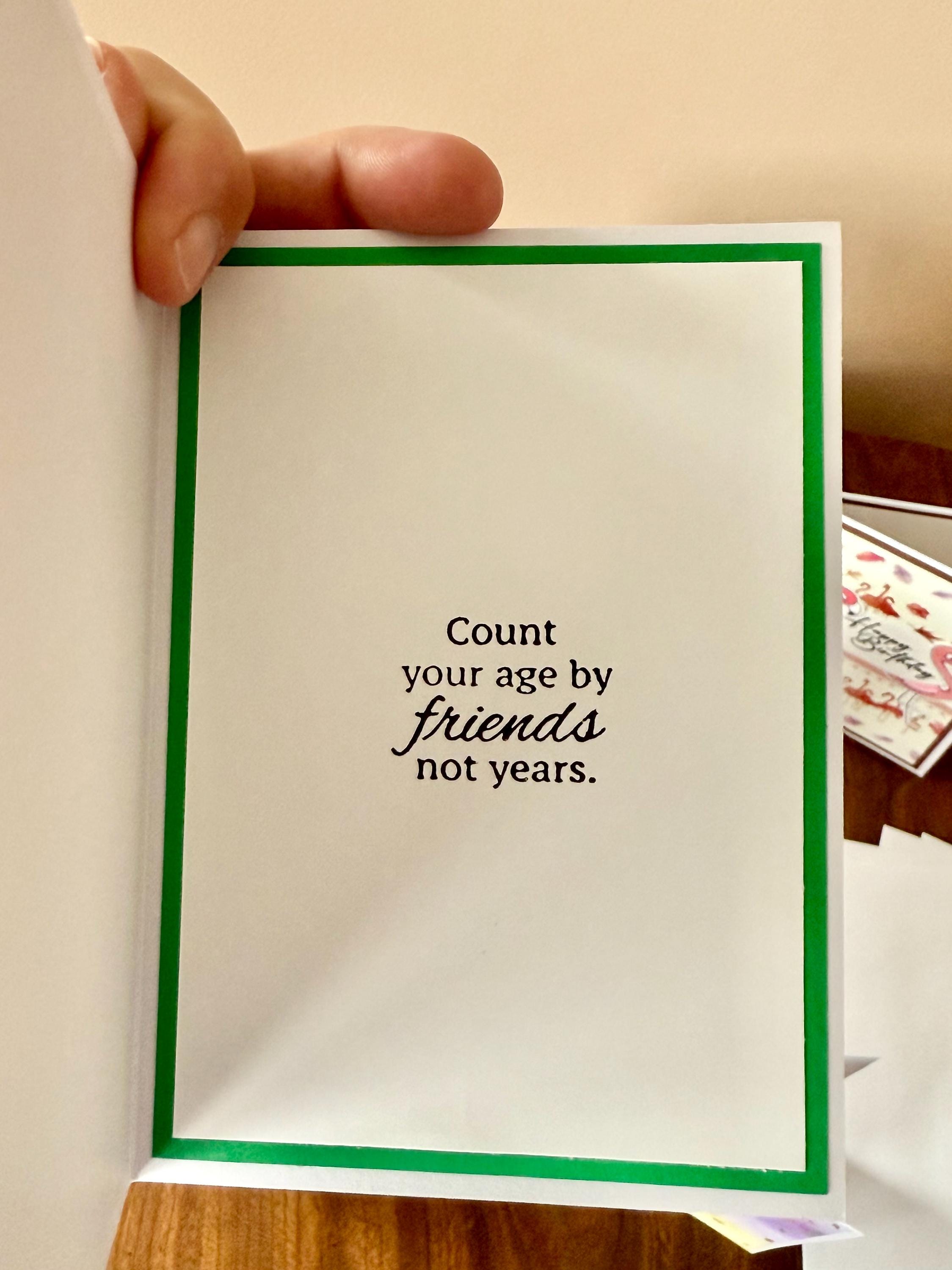 Celebrate birthdays with this charming pack of 5 unique, hand-stamped and hand-colored cards! Each 4.25x 5.5 card comes with a matching envelope and features thoughtful, festive designs with heartfelt messages. Perfect for sending birthday wishes to friends, family, or loved ones, this pack offers a mix of playful, elegant, and colorful styles.