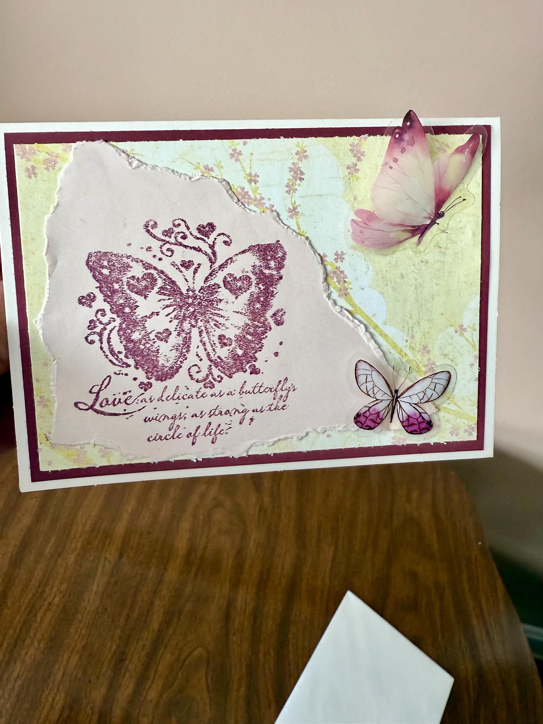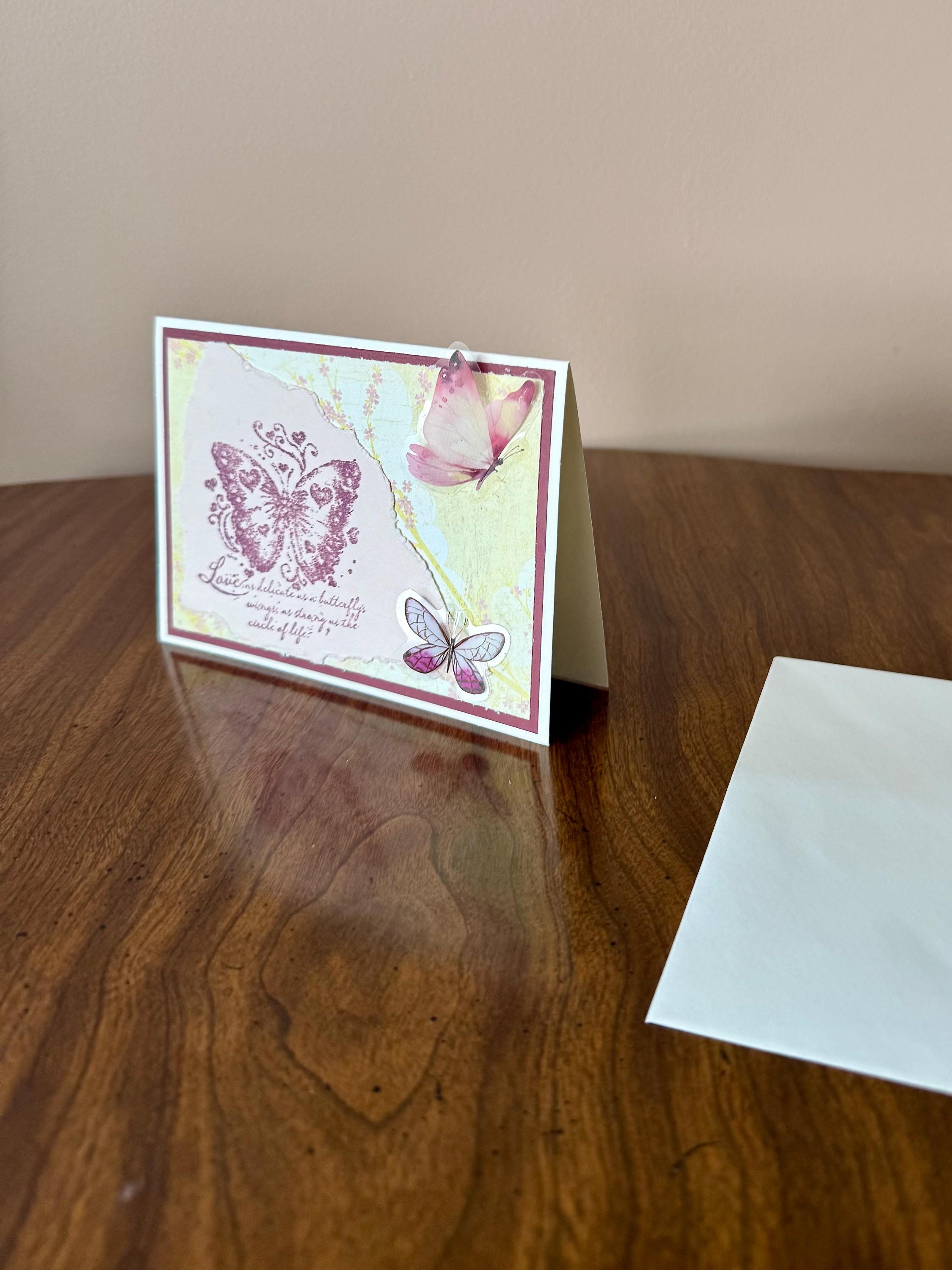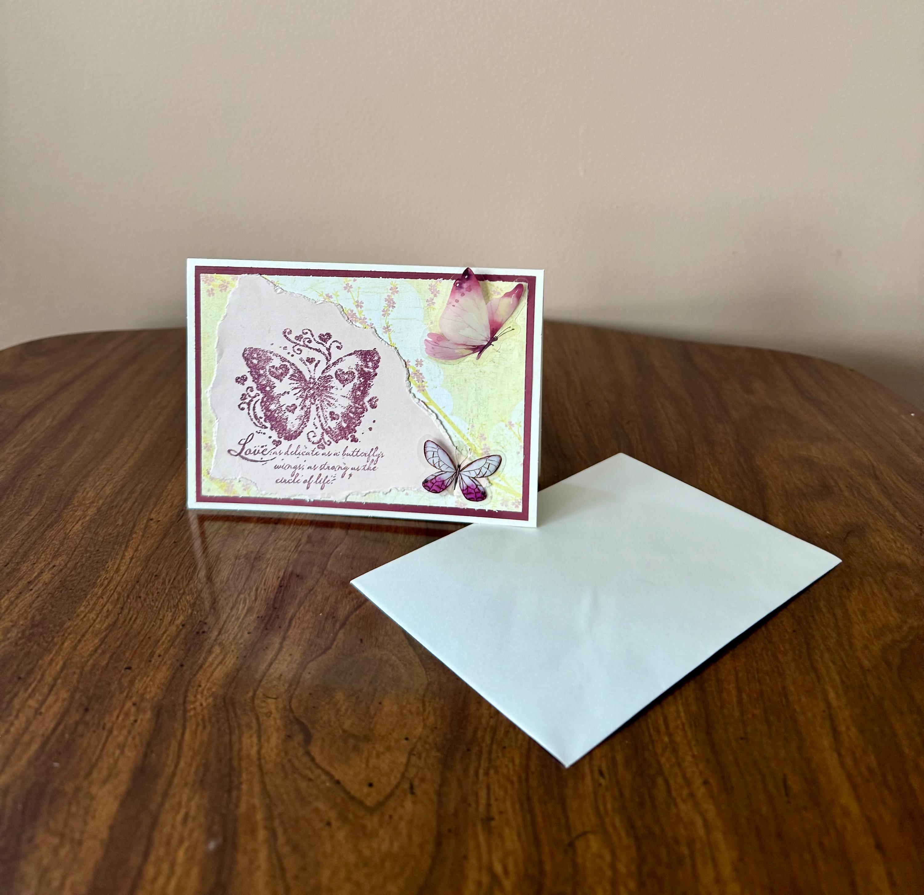 3D Butterfly Greeting Notecard – Handmade Blank Card with Envelope