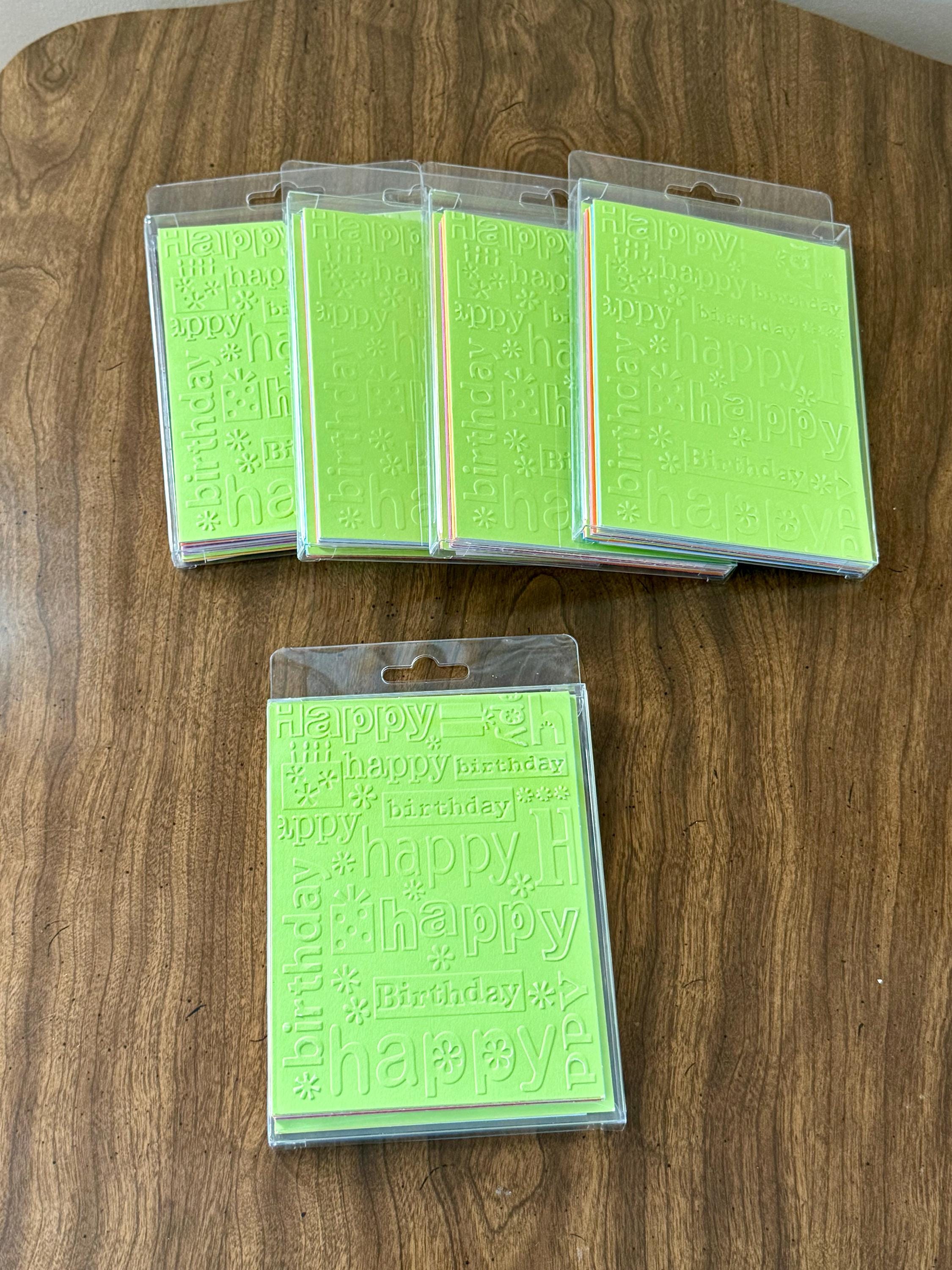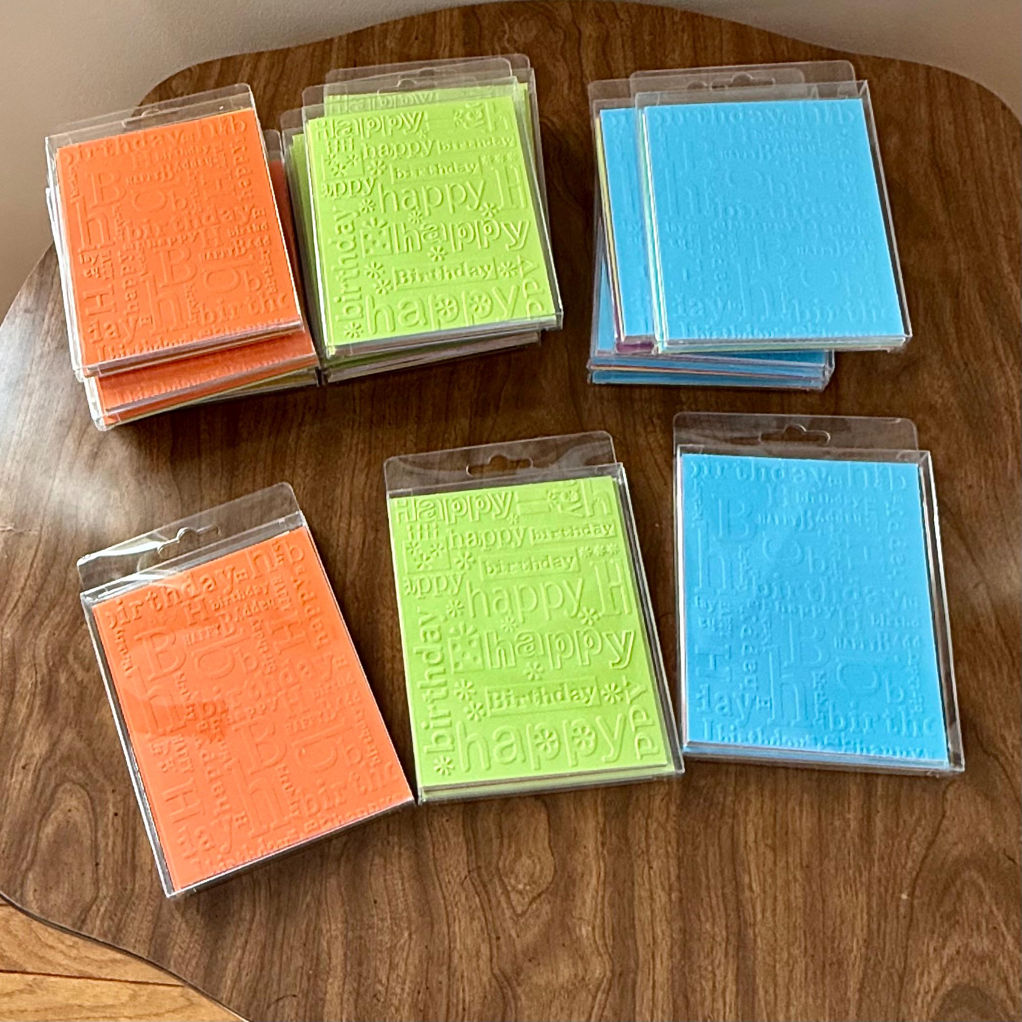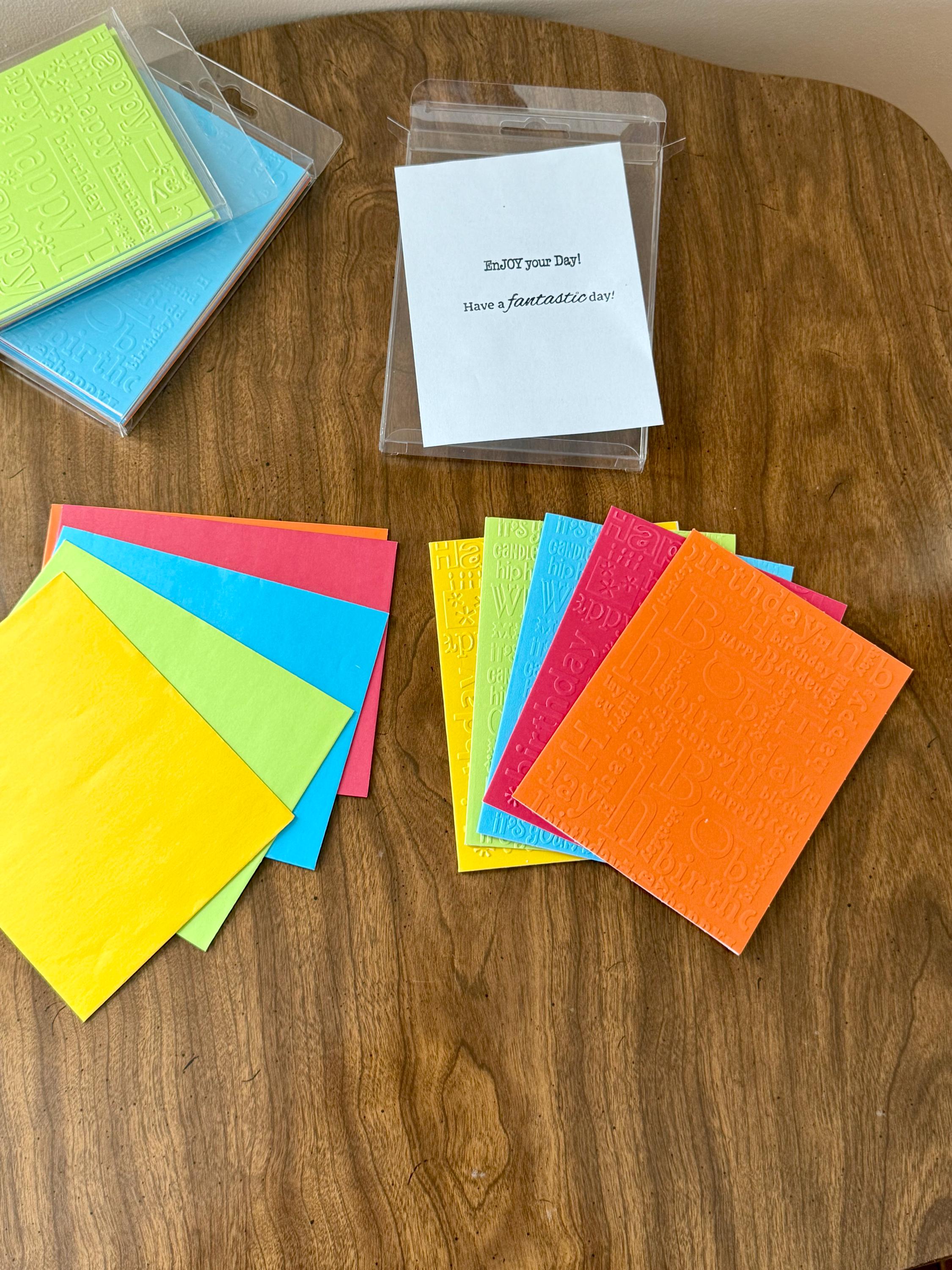 Variety of Embossed Birthday Greetings; messages inside are: Enjoy your day! And Have a Fantastic Day!