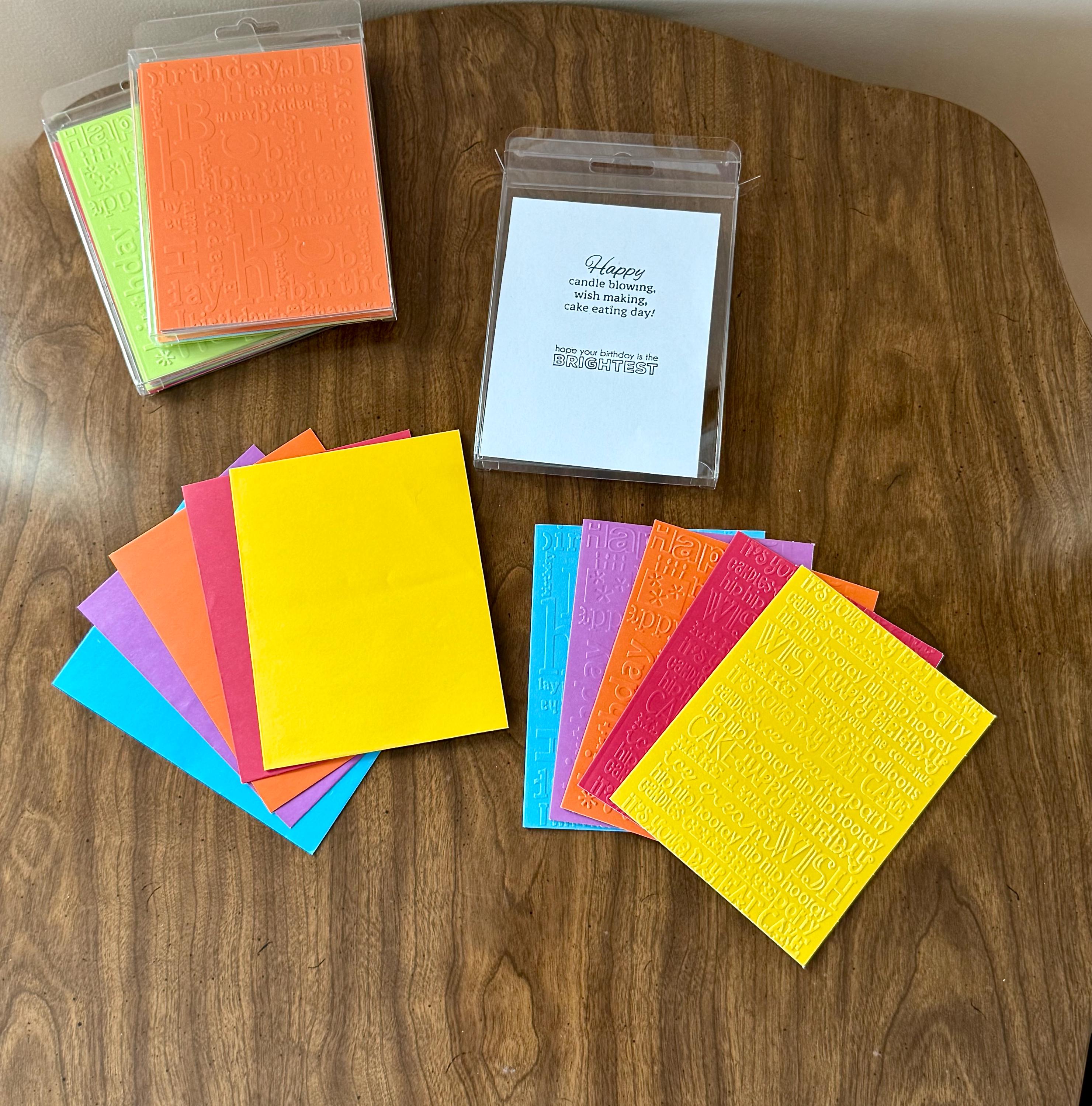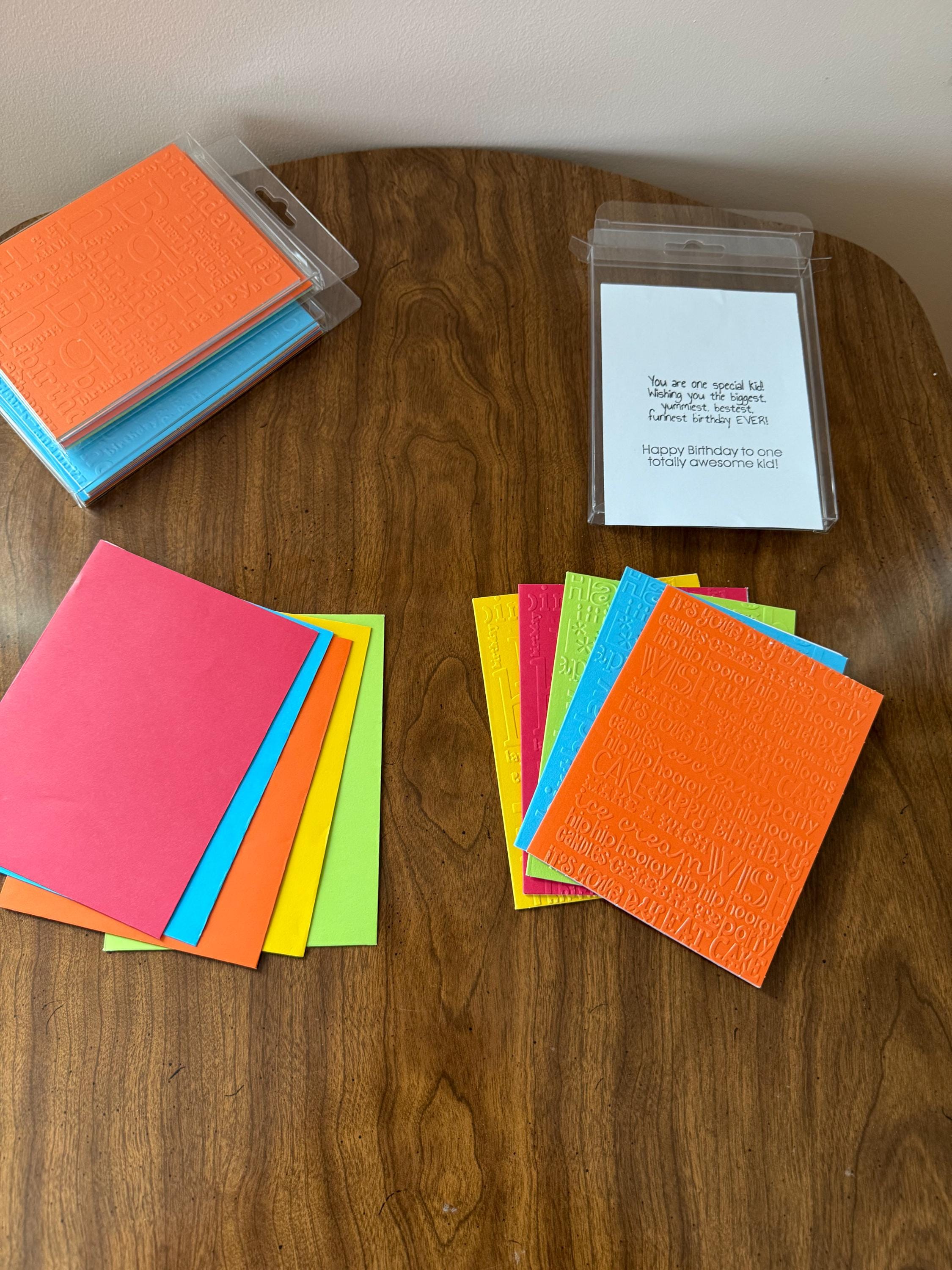 Variety of Embossed Birthday Greetings; messages inside include: You are one special kid Wishing you the biggest, yummiest, bestest funniest birthday ever! 🎨 Box C Designs: