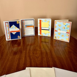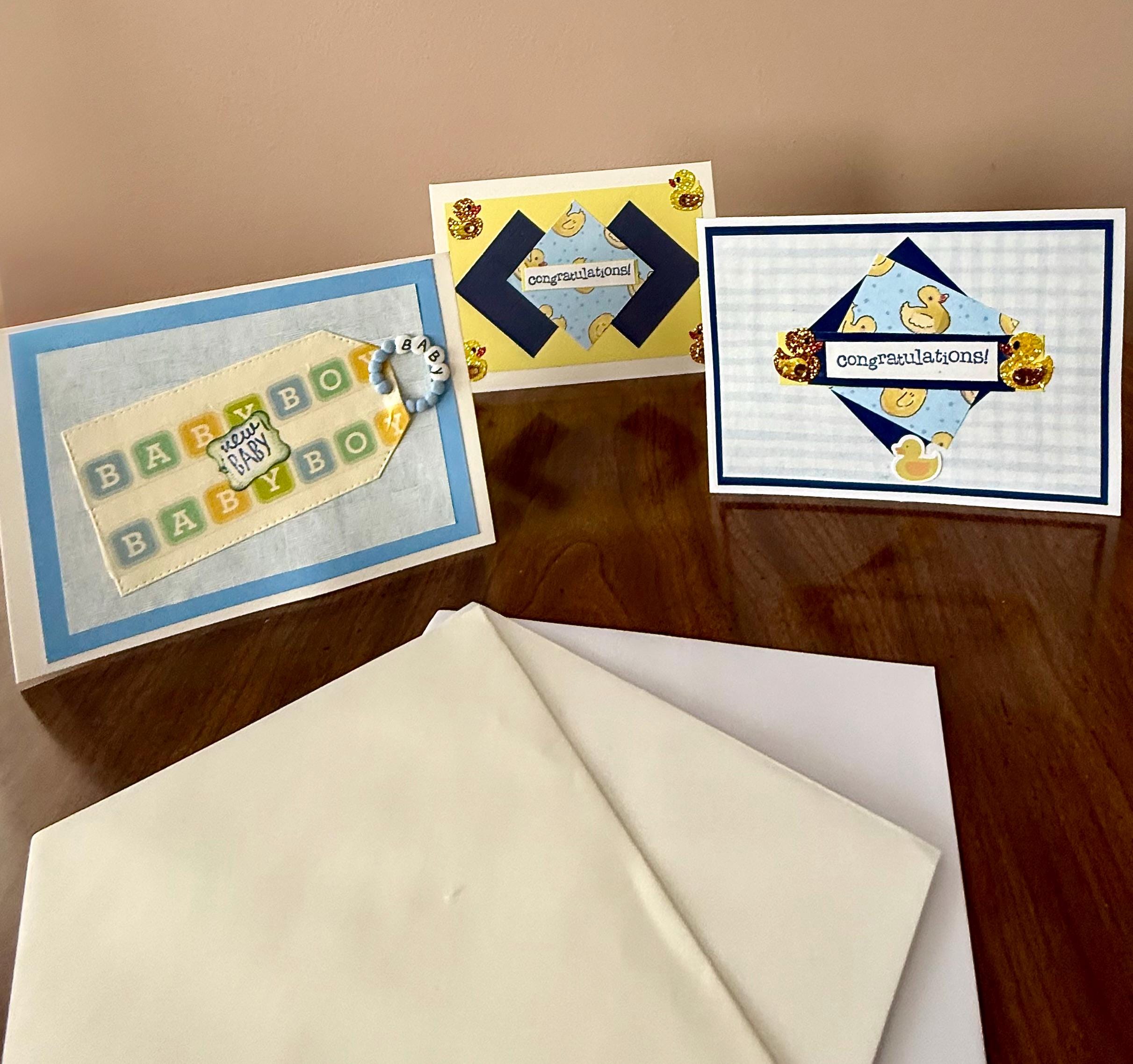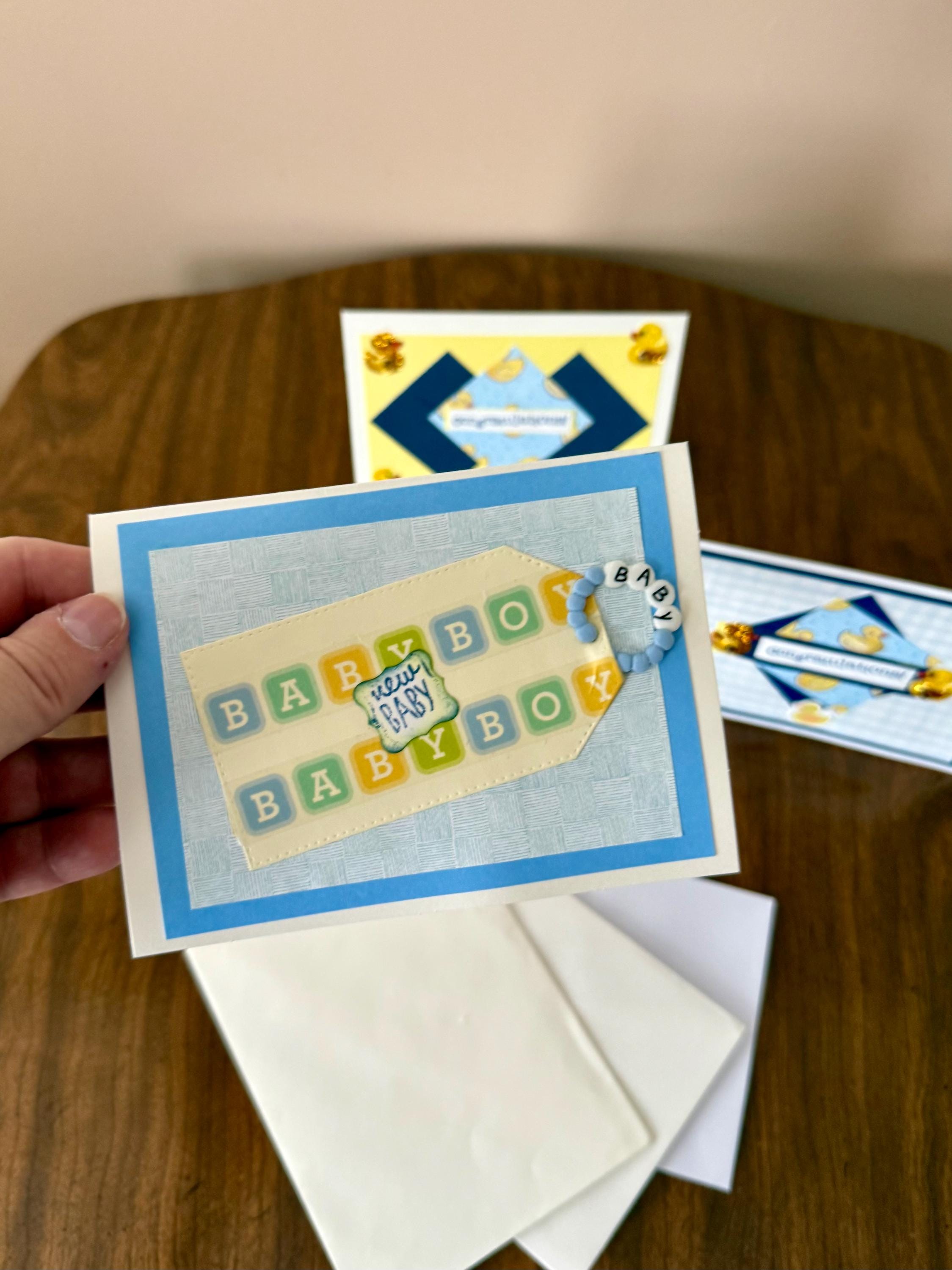 New Baby Boy Cards – 5.5x4.25, Blank Inside, Hand-Colored Baby Block & Duck Designs, Includes Envelopes