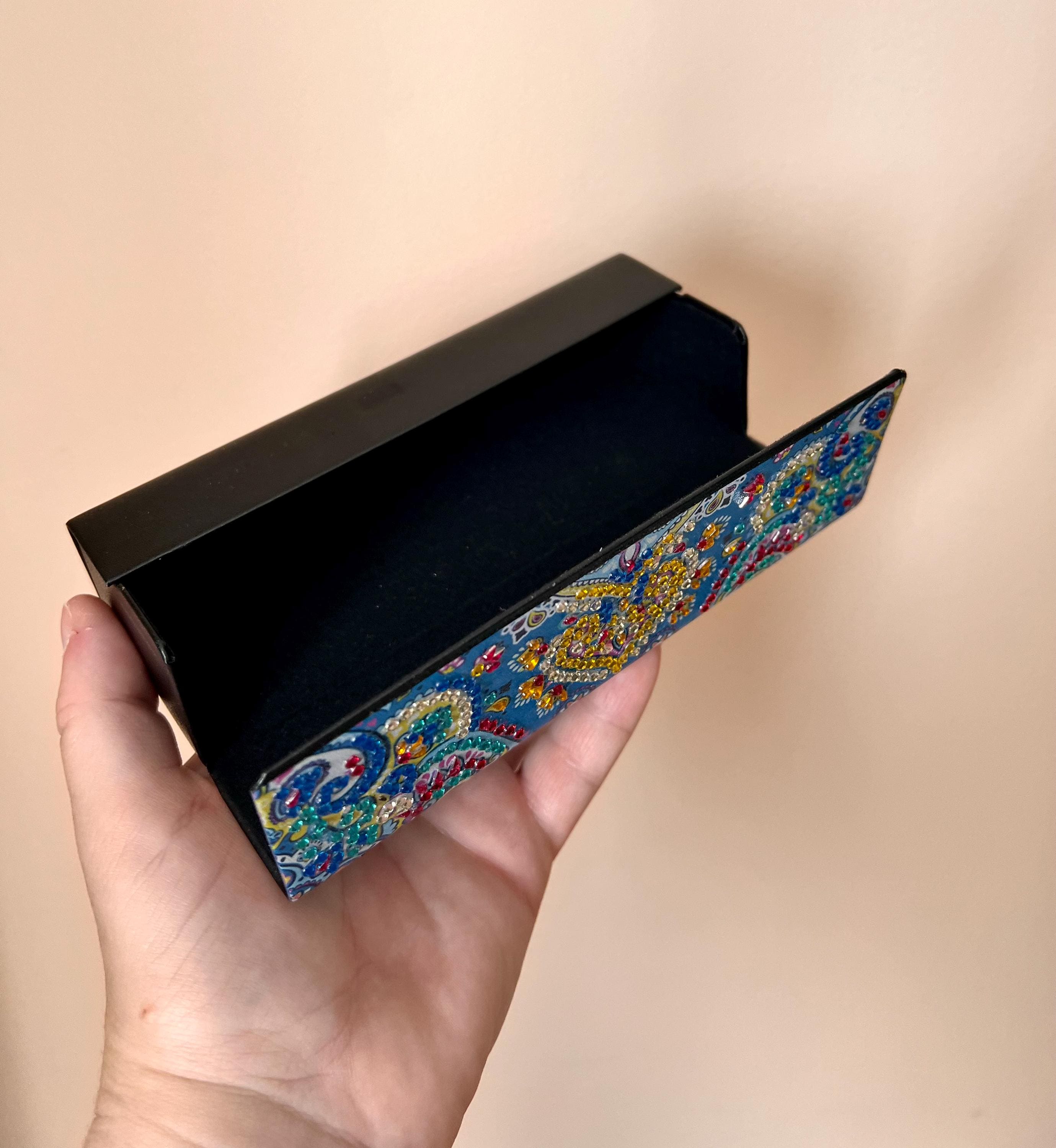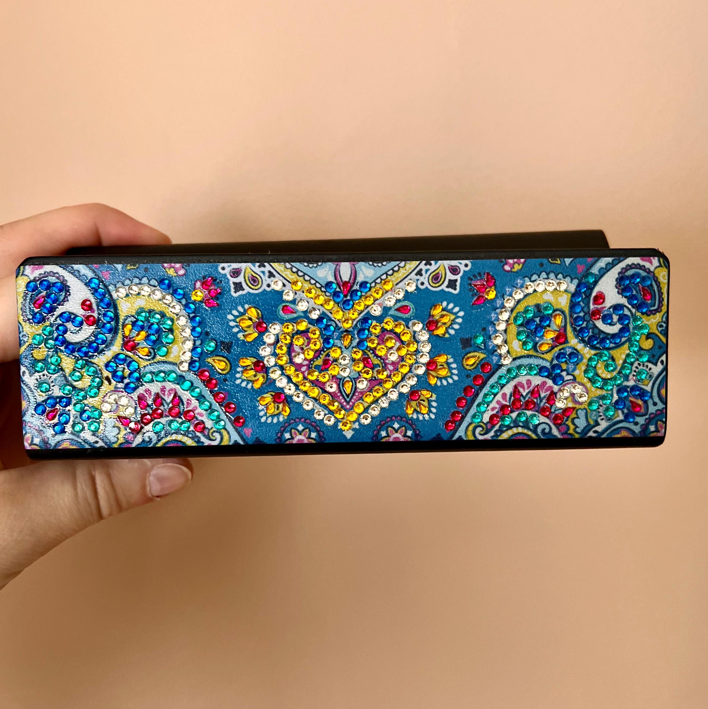 Keep your glasses safe in style with this handmade Diamond Art Eyeglass Case! πŸ’Žβœ¨ Covered in sparkling rhinestones, this case adds a touch of glamour while protecting your eyeglasses or sunglasses.