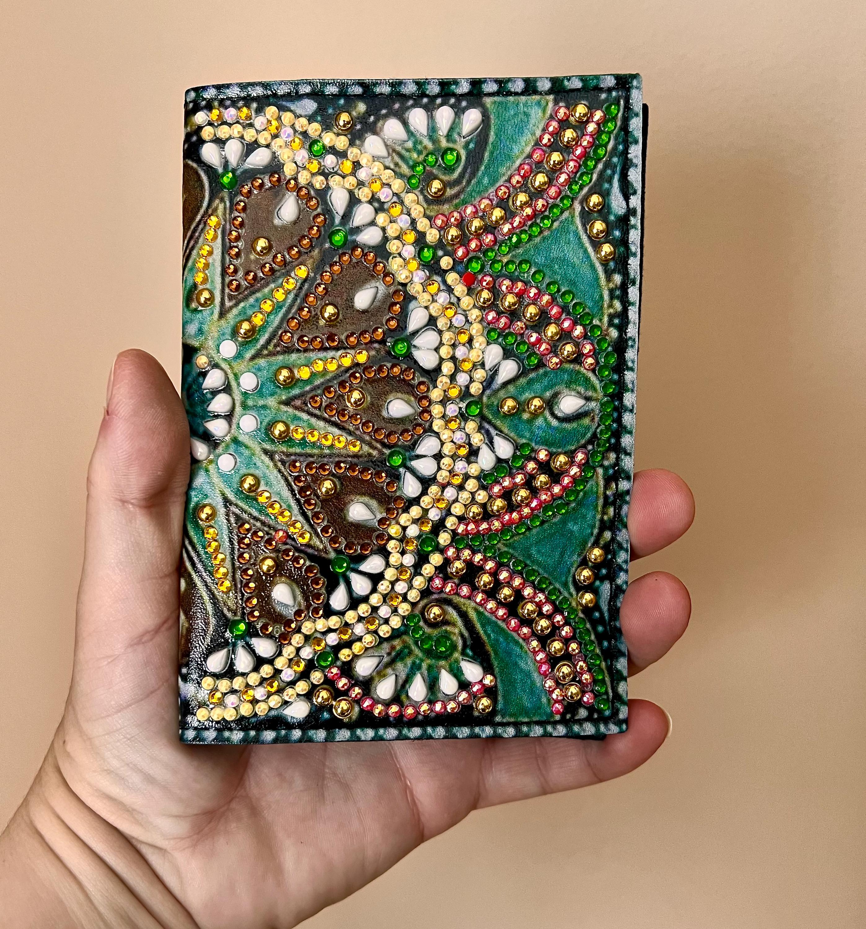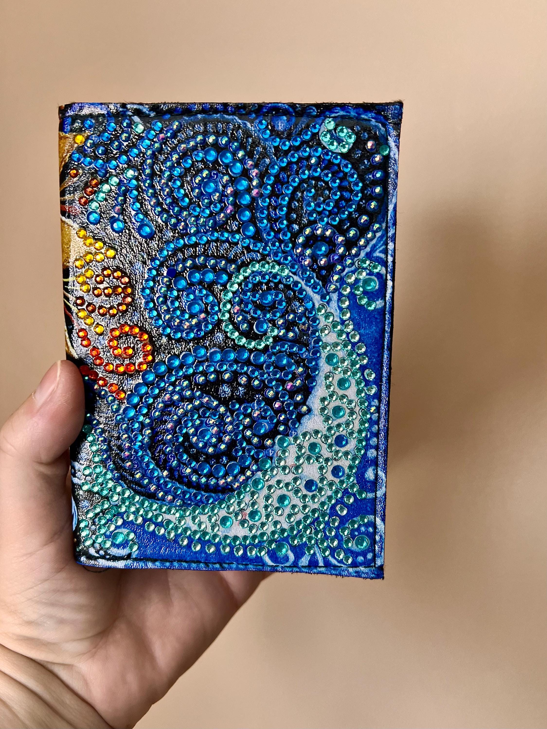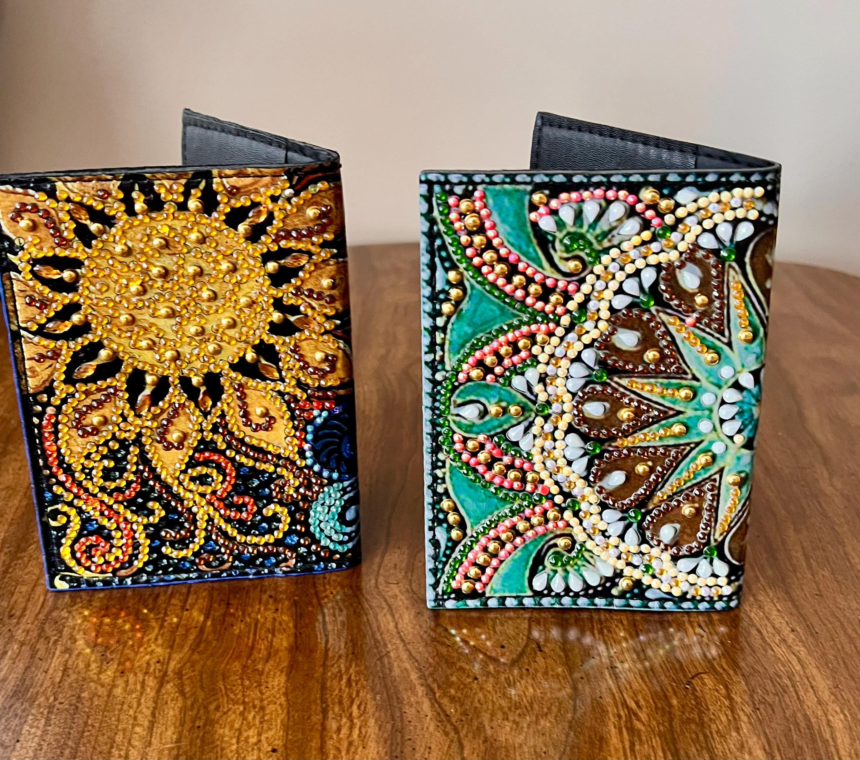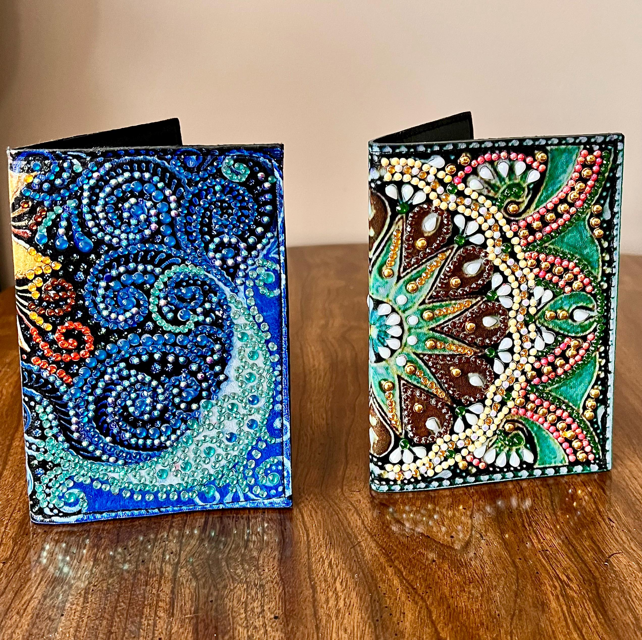 Handmade Rhinestone Passport Holder or Card Wallet – Diamond Painting Travel Case – Gift for Women or Men